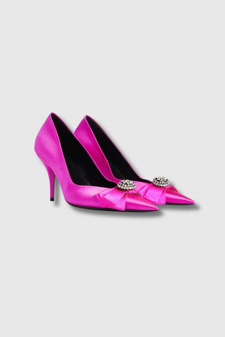 Avenue Palazzo court shoes in satin and fuchsia pink jewels