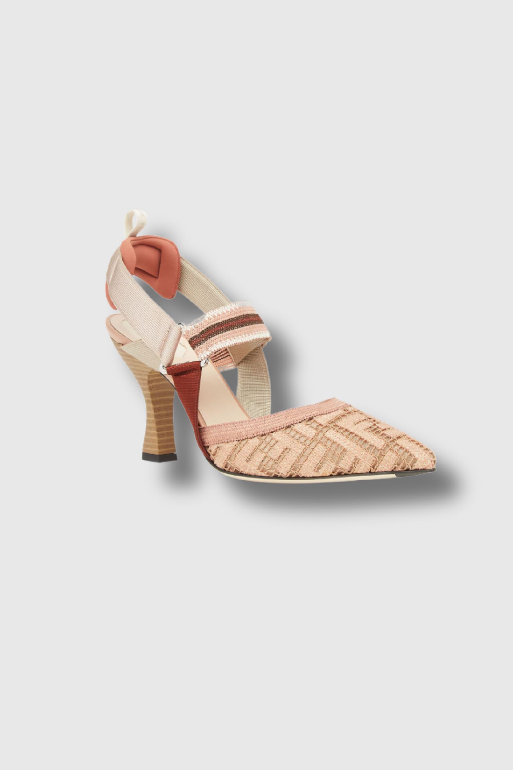 Fendi's pink Colibrì Slingbacksen with FF embroidery feature elasticated ribbons, rubber detailing on the soles and an elegant, feminine design.