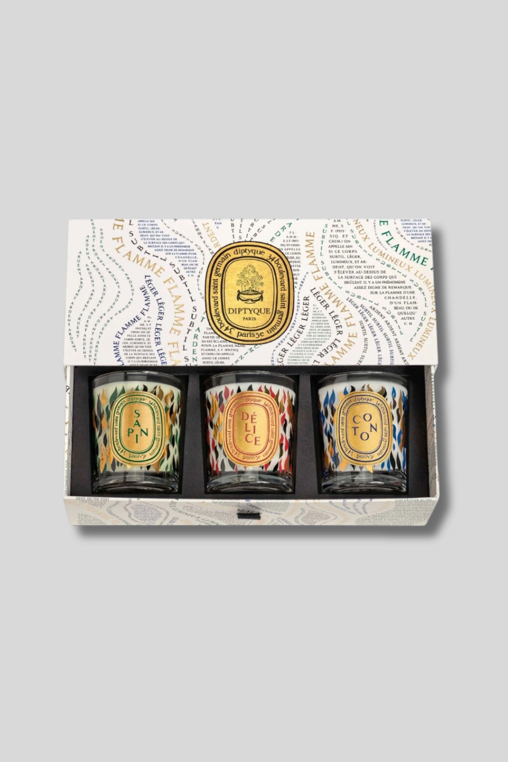 Fir, Délice, Cotton. These small-sized candles with winter scents come together in a limited edition box for the holidays.
