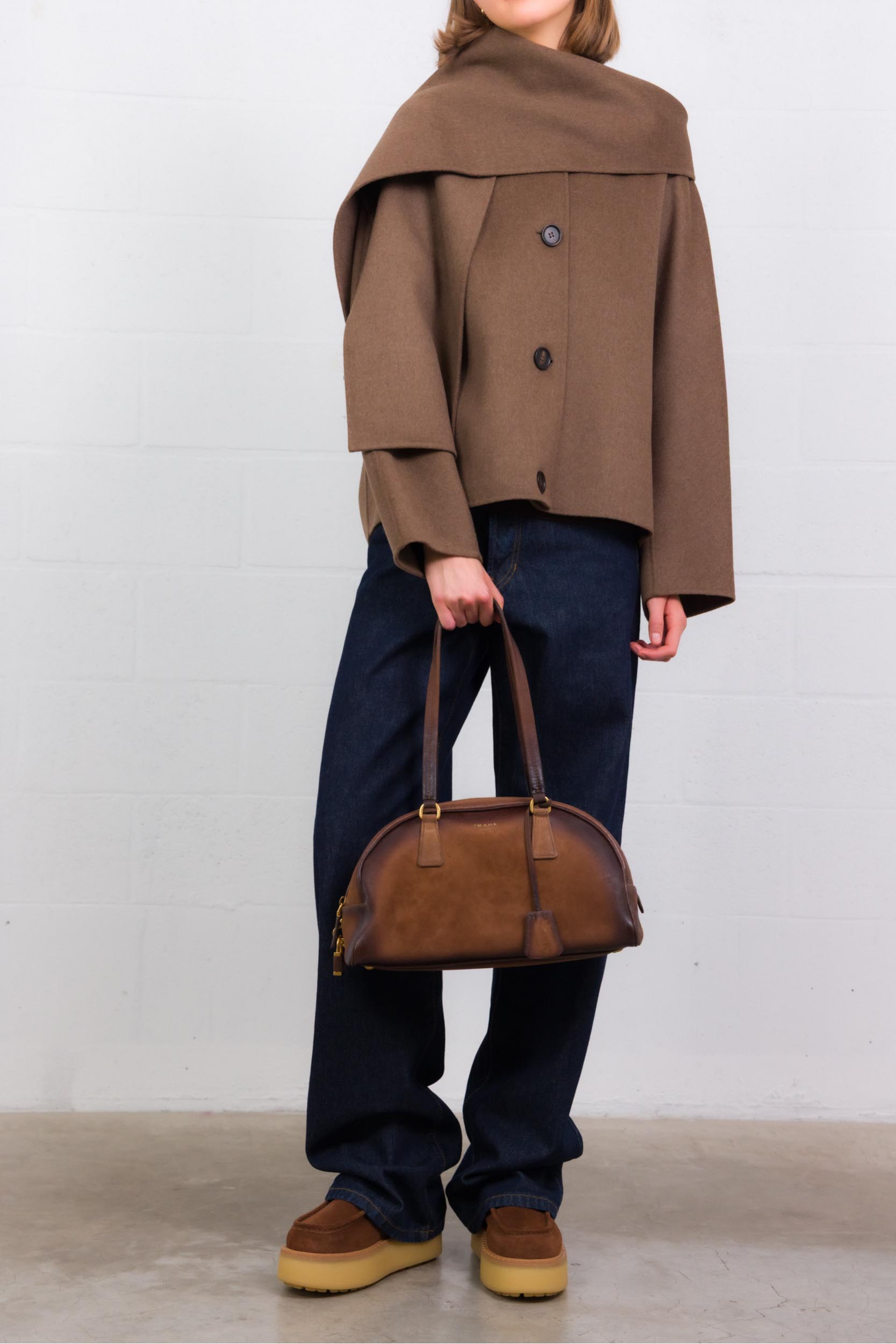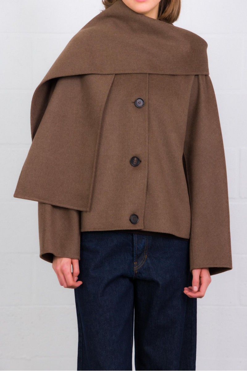 This short brown wool jacket designed by MaxMara embodies contemporary elegance. Crafted from high-quality virgin wool, the Kate jacket stands out for its very loose fit and integrated scarf, which adds a sophisticated and practical touch. Its hip-length cut and non-stretch fabric create a structured and refined silhouette, perfect for enhancing your outfits.