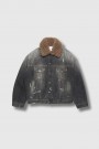 A contemporary take on the classic denim jacket, combining utility style with artistic design.