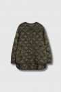Its flared cut, dropped shoulders and elasticated cuffs create a relaxed, modern silhouette. Featuring a crew neck, visible button fastening and piped pockets, it stands out with its slightly longer rounded hem at the back, perfect for a chic and functional everyday look.