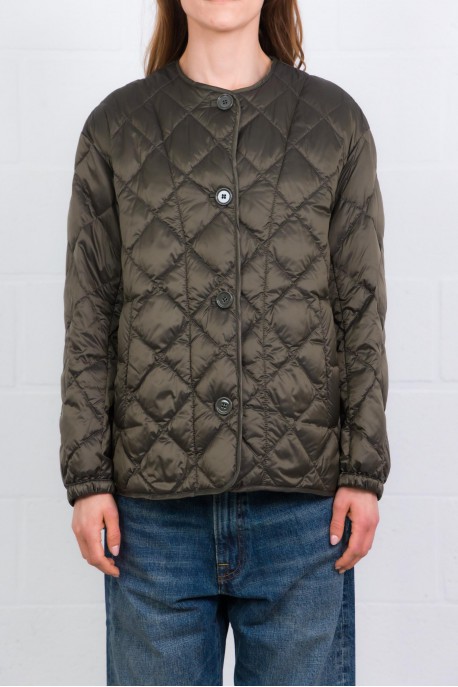 This khaki quilted Softd jacket by Max Mara reinterprets the puffer jacket with contemporary elegance. Crafted from iridescent waterproof canvas, it is quilted with a delicate diamond pattern and lined with goose down for light, enveloping warmth.
