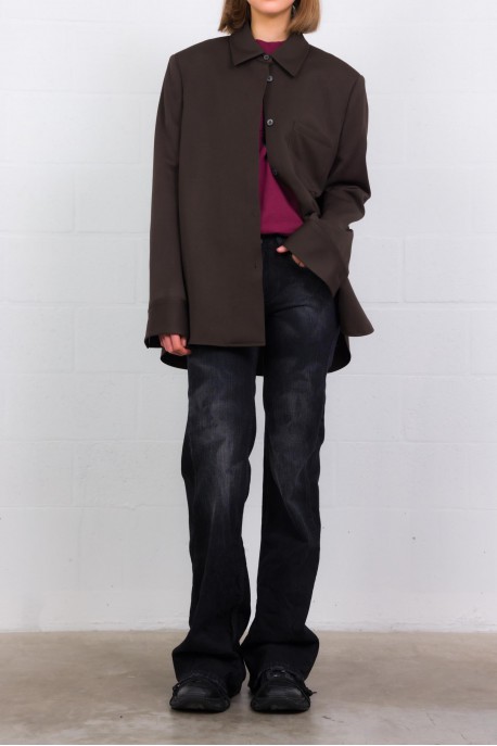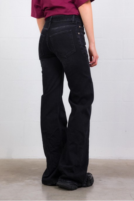 The black Wide Leg jeans by Balenciaga stand out with their oversized cut and contemporary attitude. Crafted from cotton denim, they feature distressed, washed details and a subtle crinkled effect, adding character and modern appeal. A mid-rise waist and covered zip fly ensure a comfortable fit, while five pockets and belt loops combine practicality with style. Made in Italy, this piece embodies the House’s refined craftsmanship.