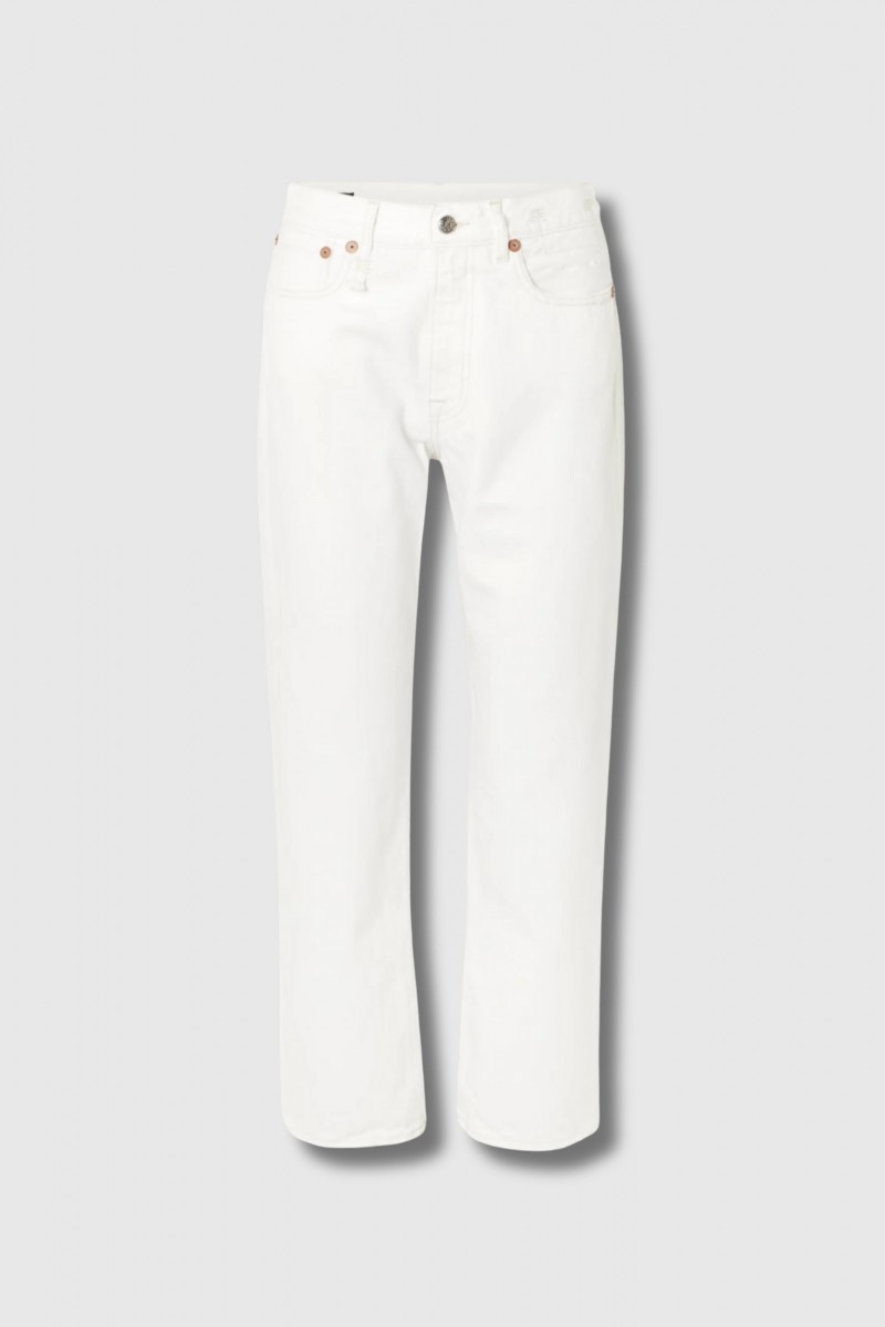 These white Aerin boyfriend jeans by R13 reinterpret casual denim with relaxed elegance. Crafted from premium cotton denim, they stand out with their clean white wash and sleek lines that add a touch of modernity to everyday looks. Their boyfriend fit offers a relaxed feel while maintaining a beautiful structure, ensuring comfort and style. An easy-to-wear piece, ideal for mid-season and summer, it fits naturally into a contemporary wardrobe.