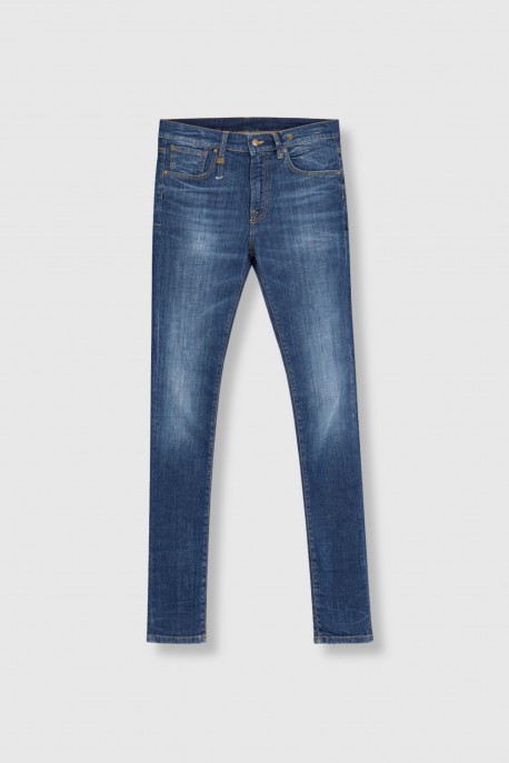 These blue Skate jeans by R13 combine urban style with contemporary minimalism. Carefully crafted, they feature a modern slim fit, five practical pockets and belt loops, offering both comfort and functionality. An essential piece for a casual, streetwear look.