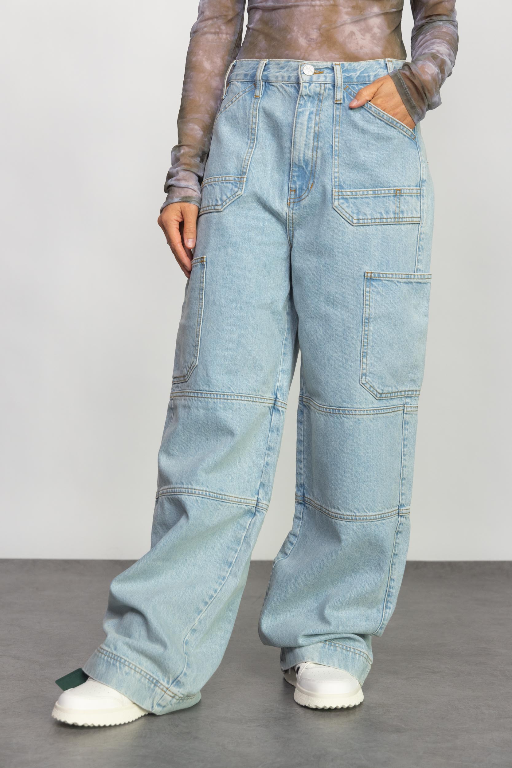With an ultra high rise and a curved seam leg, this pair features cargo pockets and utility patch details. Crafted from rigid denim in a vintage-inspired wash, if wide-leg jeans are your preferred style, the barrel fit is your next new favorite, designed by Frame.