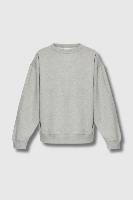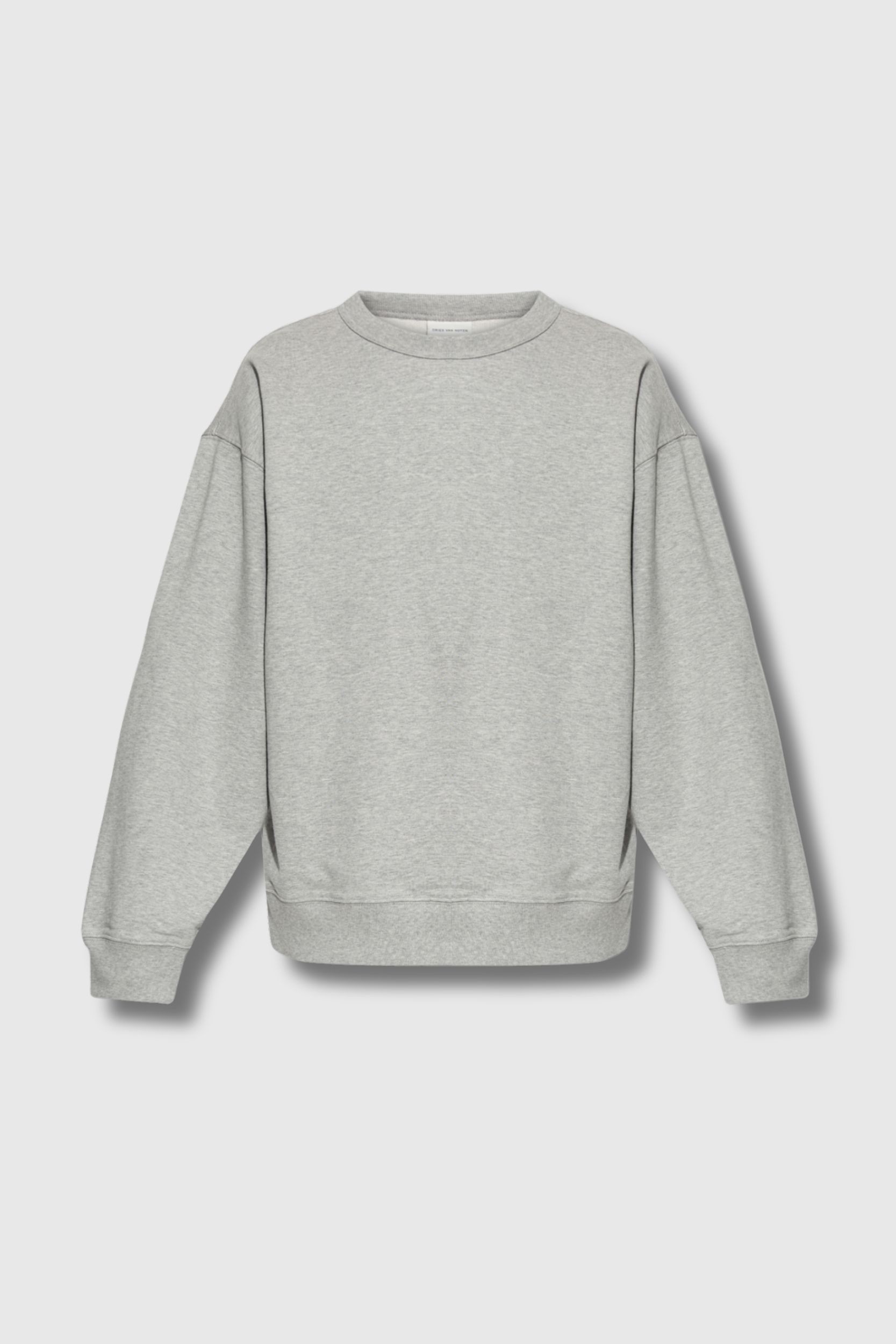 The melange grey jersey sweatshirt by Dries Van Noten embodies timeless elegance and refined contemporary minimalism. Featuring a loose fit, oversized shoulder line, and classic crew neckline, it subtly enhances the silhouette. Crafted from medium-weight high-quality cotton with a soft french terry finish, it delivers exceptional comfort. Free from prints, patterns, or logos, the design expresses sophisticated simplicity. Ribbed trims at the cuffs, hem, and neckline complete its understated and functional character.
