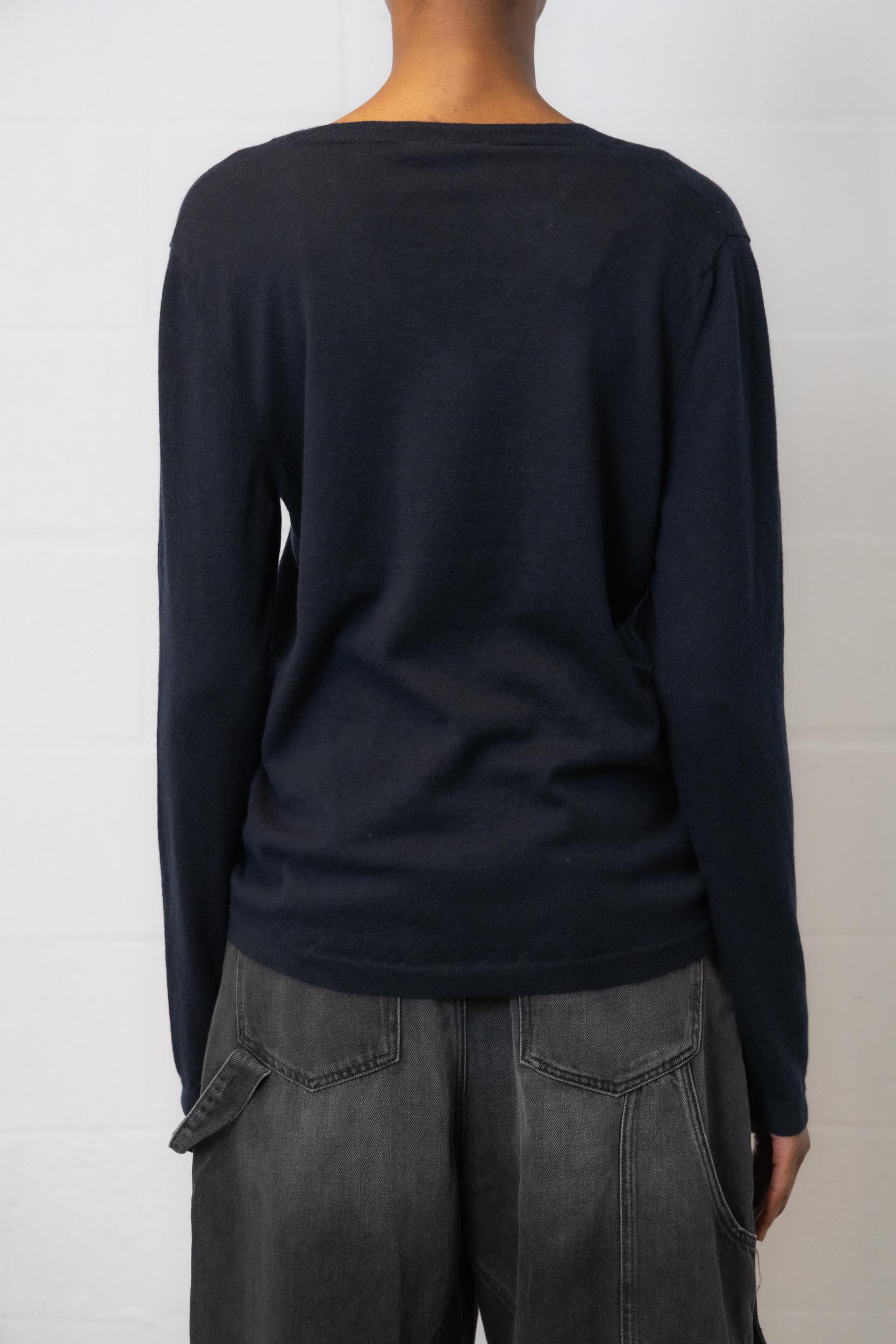 This navy blue wool sweater by Avant Toi combines relaxed ease with refined style. Featuring a straight, loose fit, a V-neckline, and long sleeves, it offers both comfort and timeless elegance.