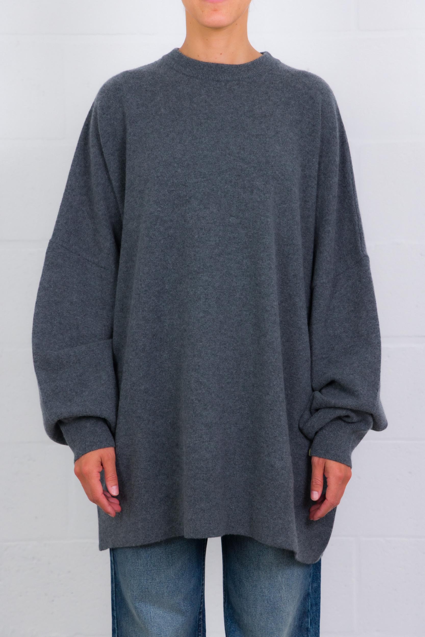 The “Juna” sweater by Extreme Cashmere embodies understated luxury and absolute comfort. Crafted from ultra-soft gray cashmere, it charms with its loose fit, dropped shoulders, and classic round neckline.