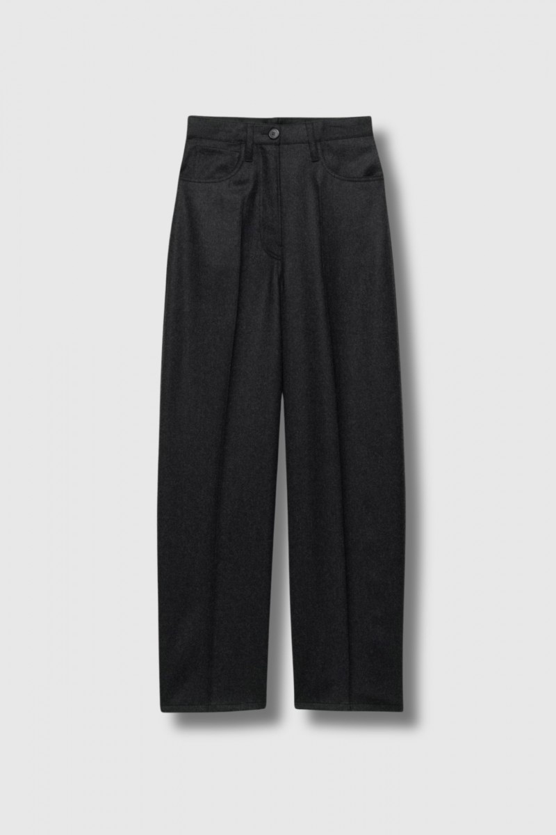 These anthracite grey flannel trousers by Prada revisit casual elegance with a loose, flowing cut in wool flannel. Their five-pocket silhouette combines comfort and modernity, while the tone-on-tone triangular logo adds the brand's iconic touch.