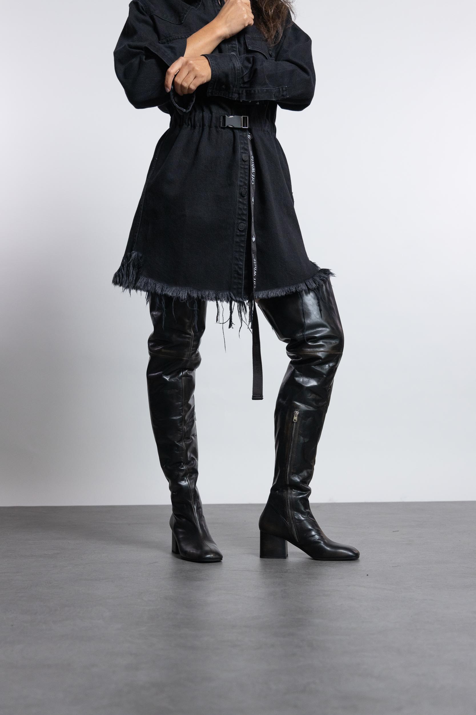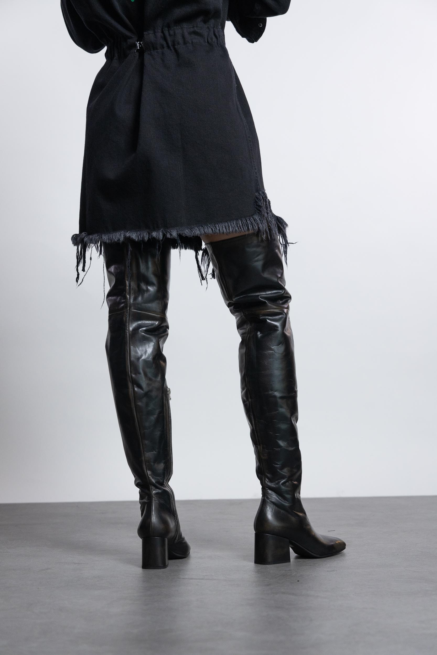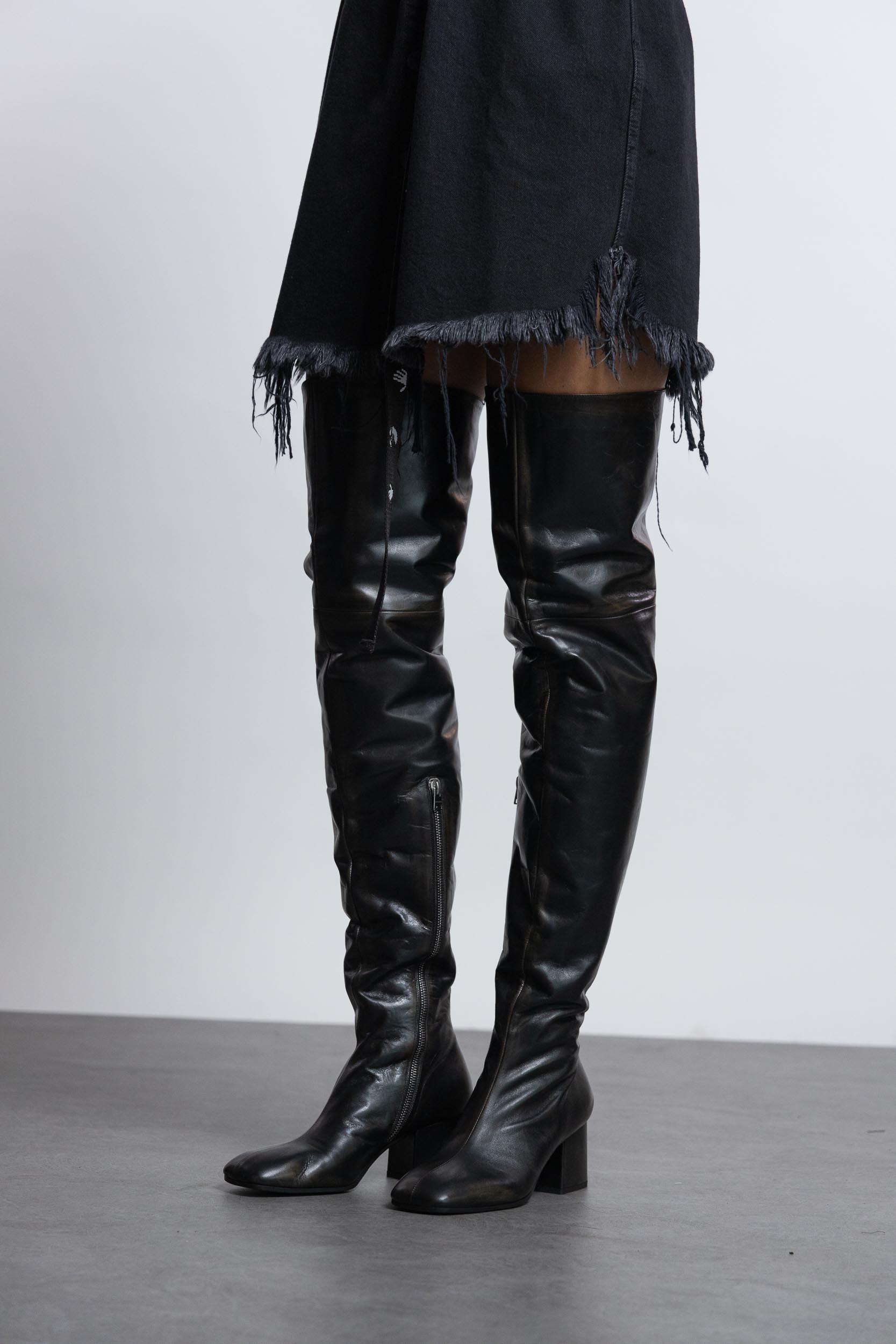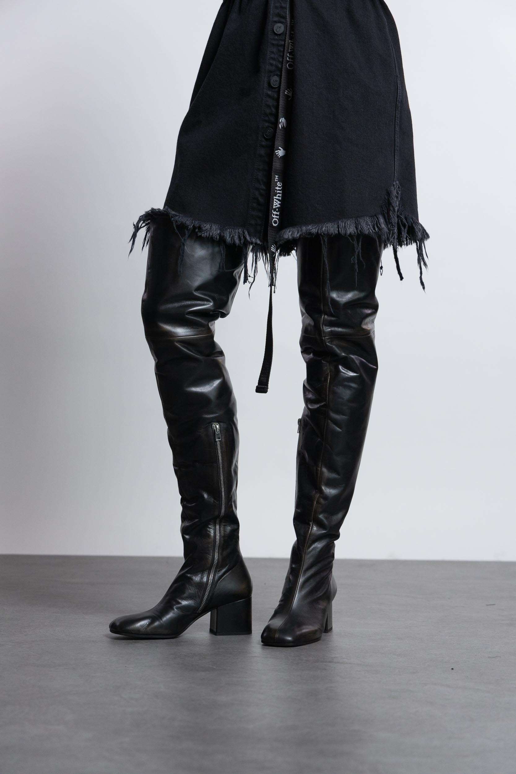 Heeled leather thigh-high boots designed by Marni.