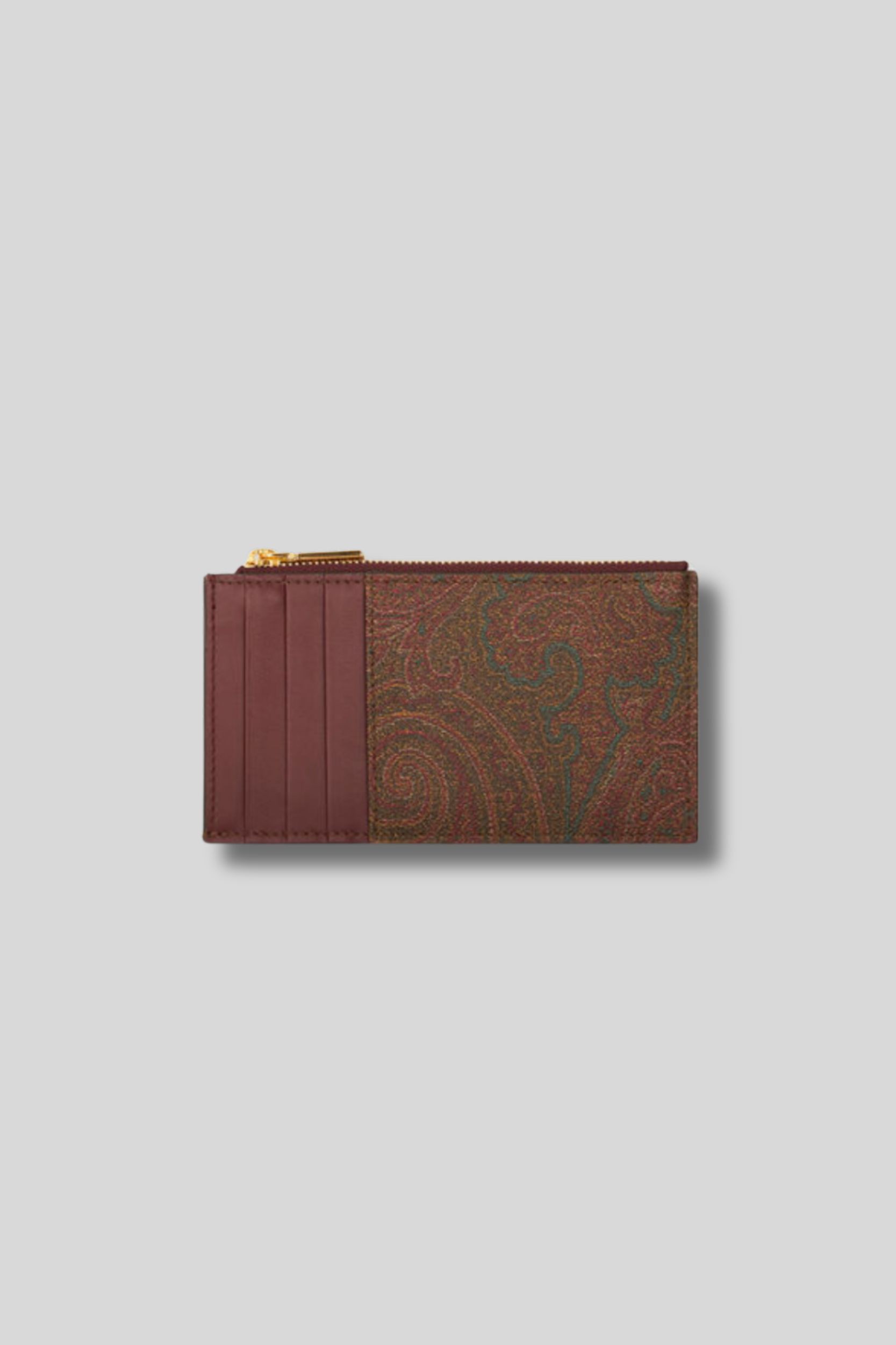 This grained jacquard Paisley fabric cardholder designed by Etro features the brand's logo embroidered on the front and four card slots on the back.
