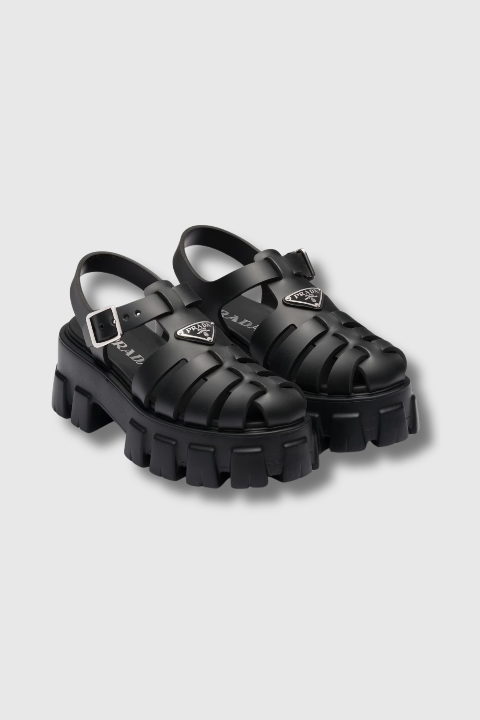 A bold, modern reinterpretation of beachwear. These Monolith sandals in rubber feature an iconic silhouette updated for daily wear. The signature Monolith sole is both voluminous and lightweight, delivering a striking presence without sacrificing comfort. The enameled triangle logo adds a subtle yet esteemed Prada detail.