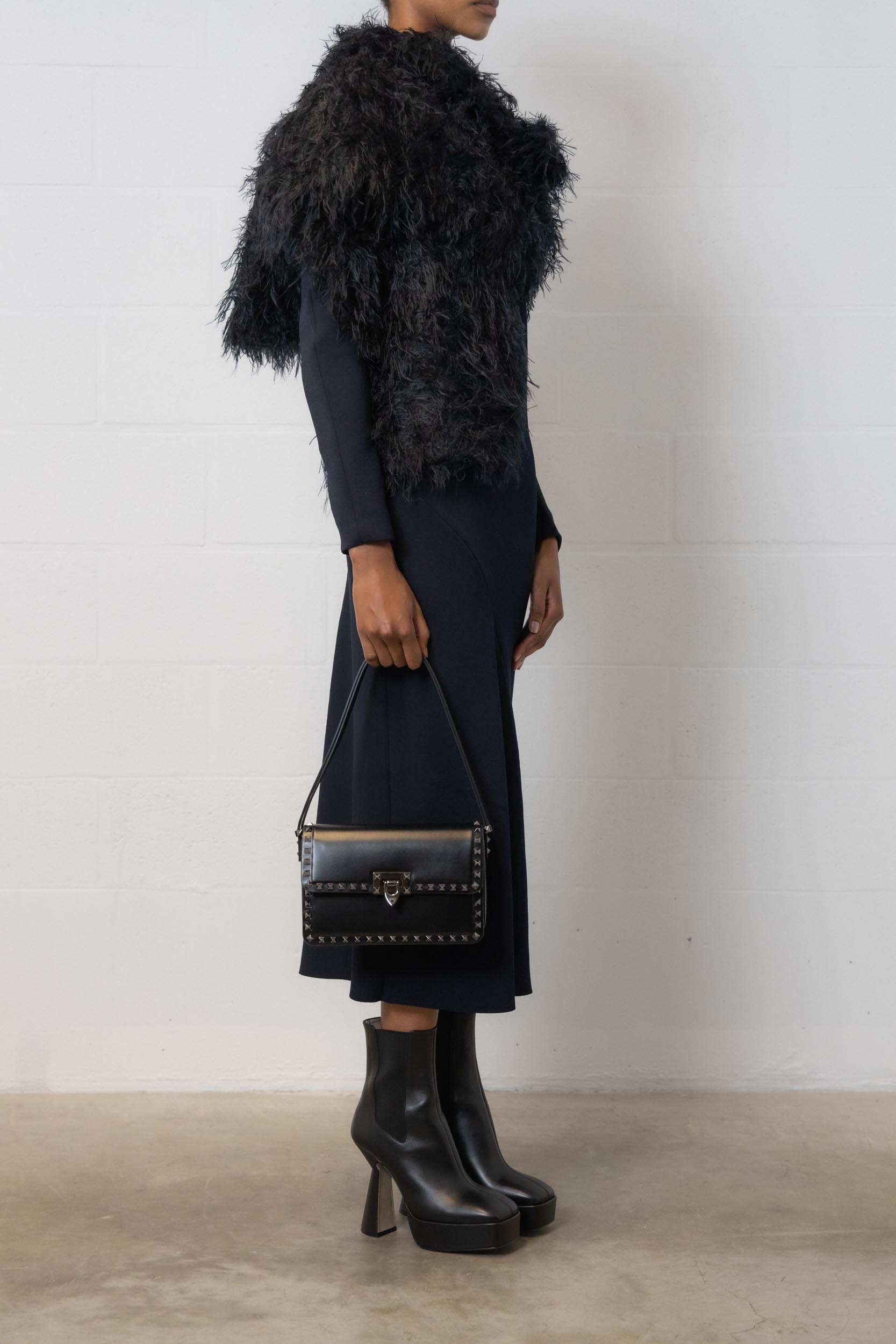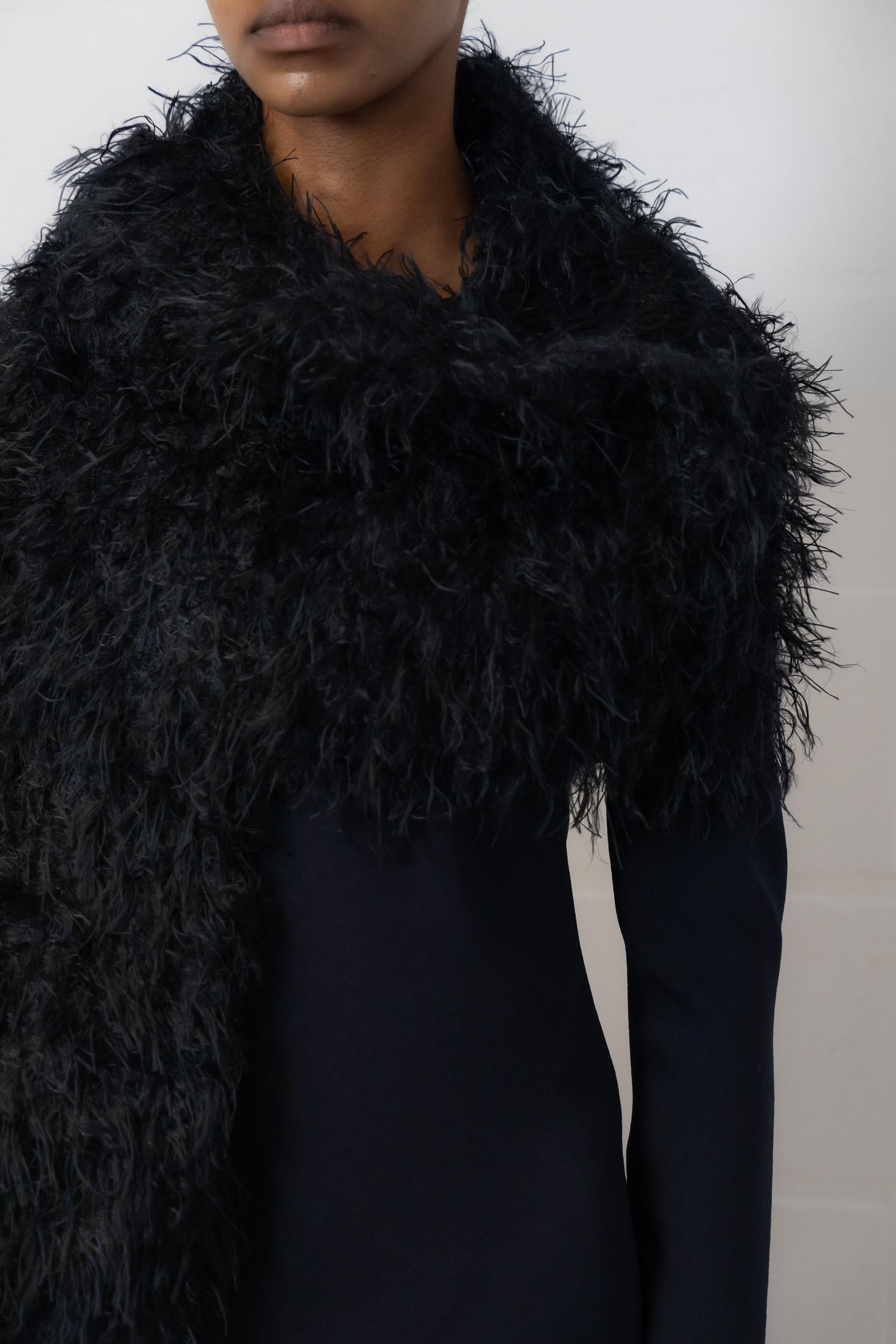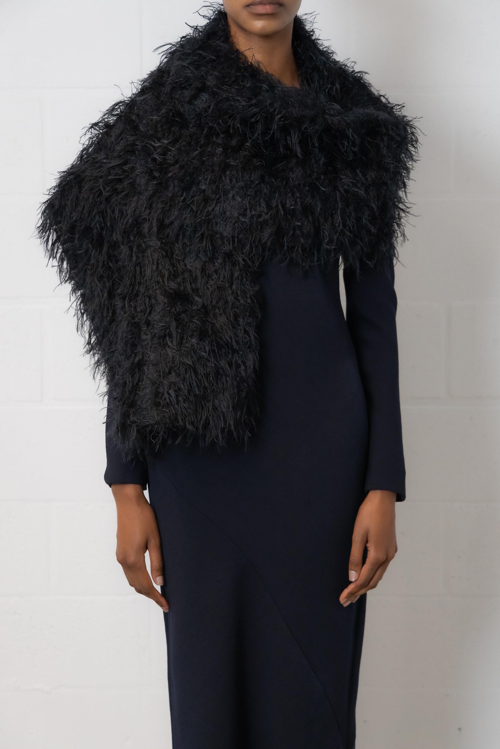 This black scarf is designed by Dries Van Noten.