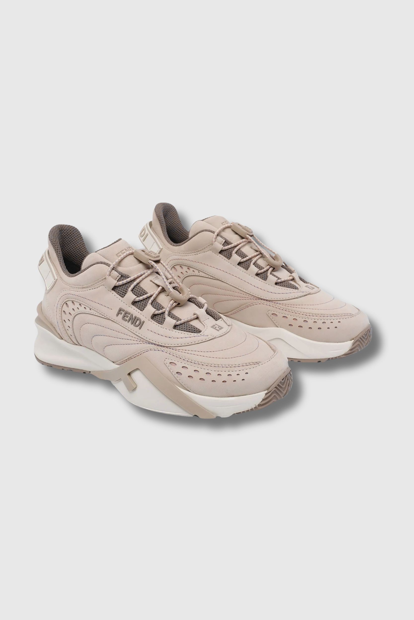 Fendi’s beige suede sneakers offer a refined blend of laid-back sophistication and luxury craftsmanship. Crafted with a 100% suede upper, their rounded toe and subtle Fendi logo maintain a clean and elegant aesthetic. Lace-up closure provides a secure fit, while the rubber sole ensures long-lasting grip and urban comfort. Made in Italy, these sneakers embody Fendi’s signature finesse.