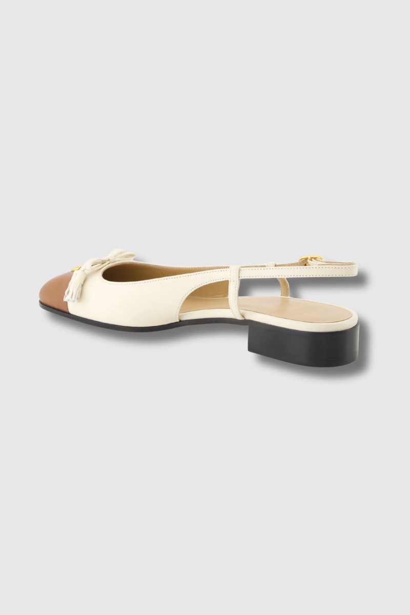 Beige leather ballet flats