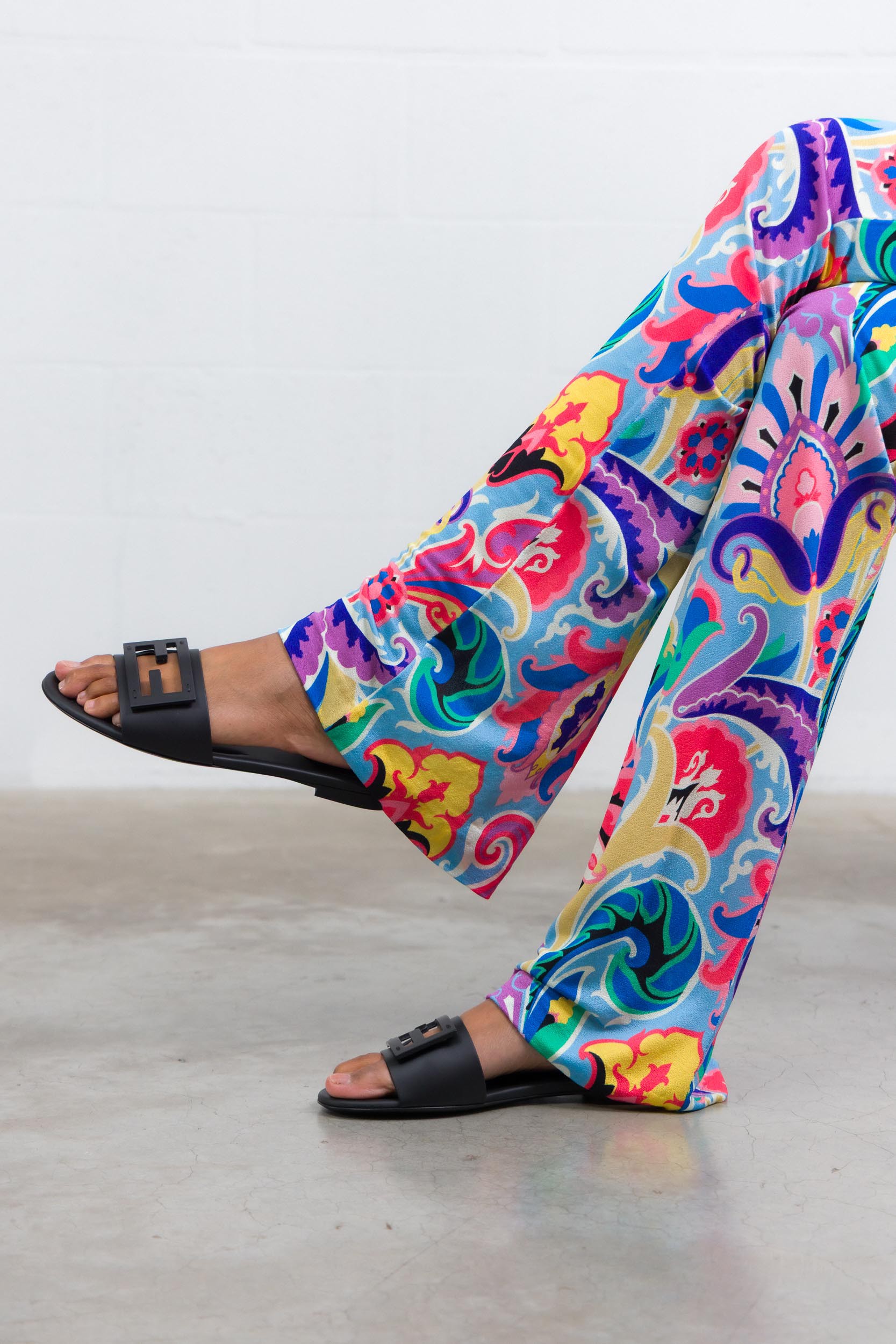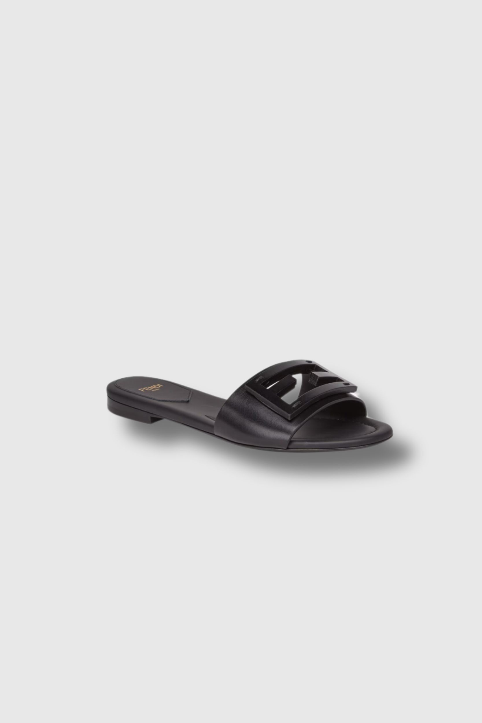 These black leather Baguette sandals are designed by Fendi. They feature a wide strap and are detailed with a tone-on-tone FF motif.