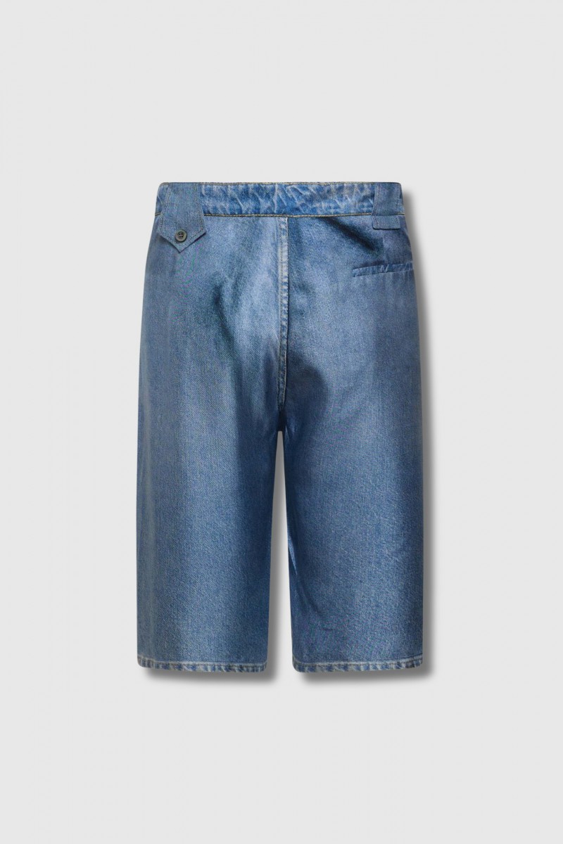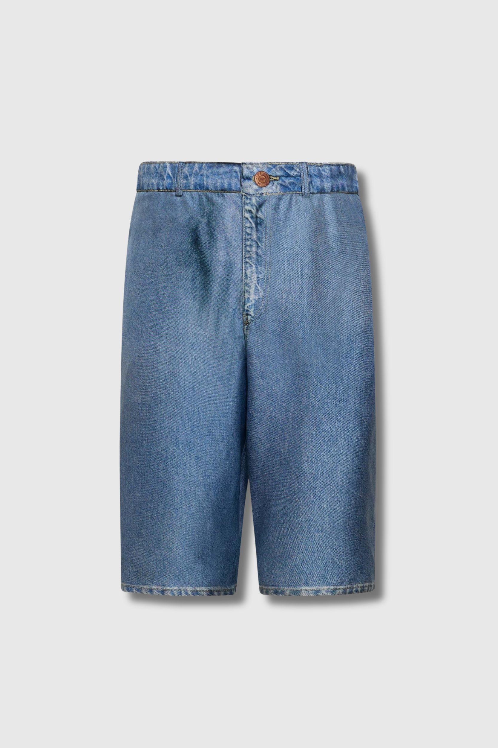 These blue trompe-l'oeil silk Bermuda shorts by Pierre Louis Mascia revisit the spirit of denim through the precious fluidity of indigo silk. Subtle washed-out effects and a classic button closure emphasise their timeless appeal, offering a silhouette that is both casual and refined. Pair with an impeccably cut white shirt and loafers for natural, contemporary elegance.
