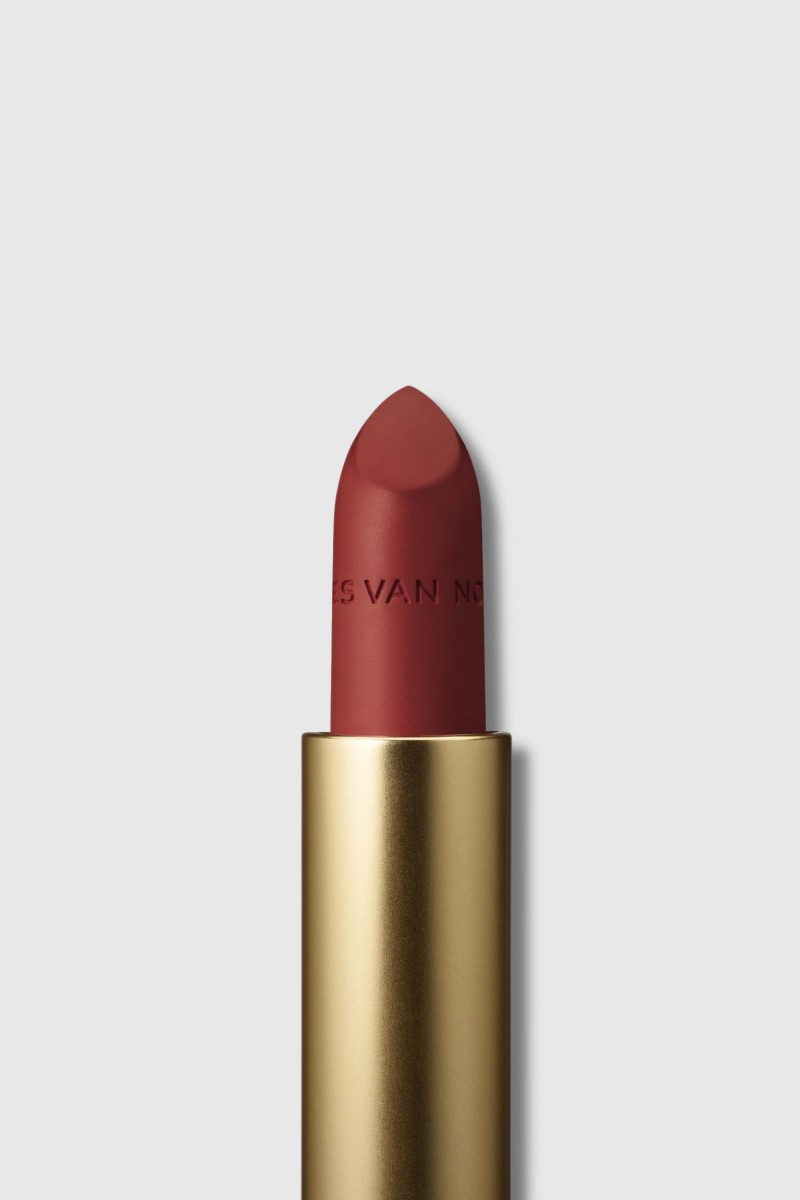 This 9 Camouflage Red Sheer Refill by Dries Van Noten is a translucent lipstick offering 12 hours of hydration and a subtle shine. Its vegan formula, enriched with muscat rose oil and apricot butter, nourishes and protects the lips. Apply with a brush for optimal precision. It comes in a case inspired by the brand's fashion collections, combining elegance and contemporary style.