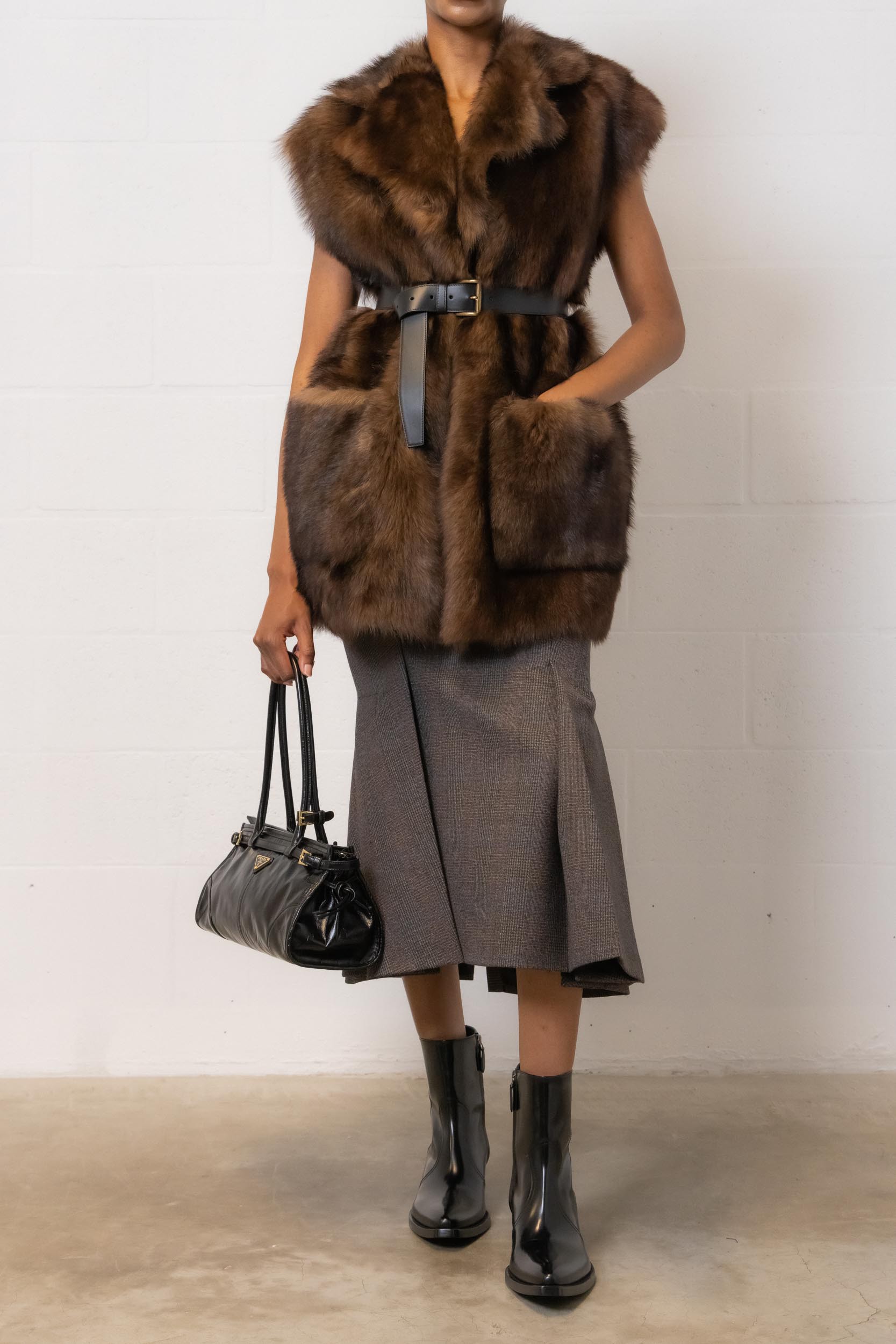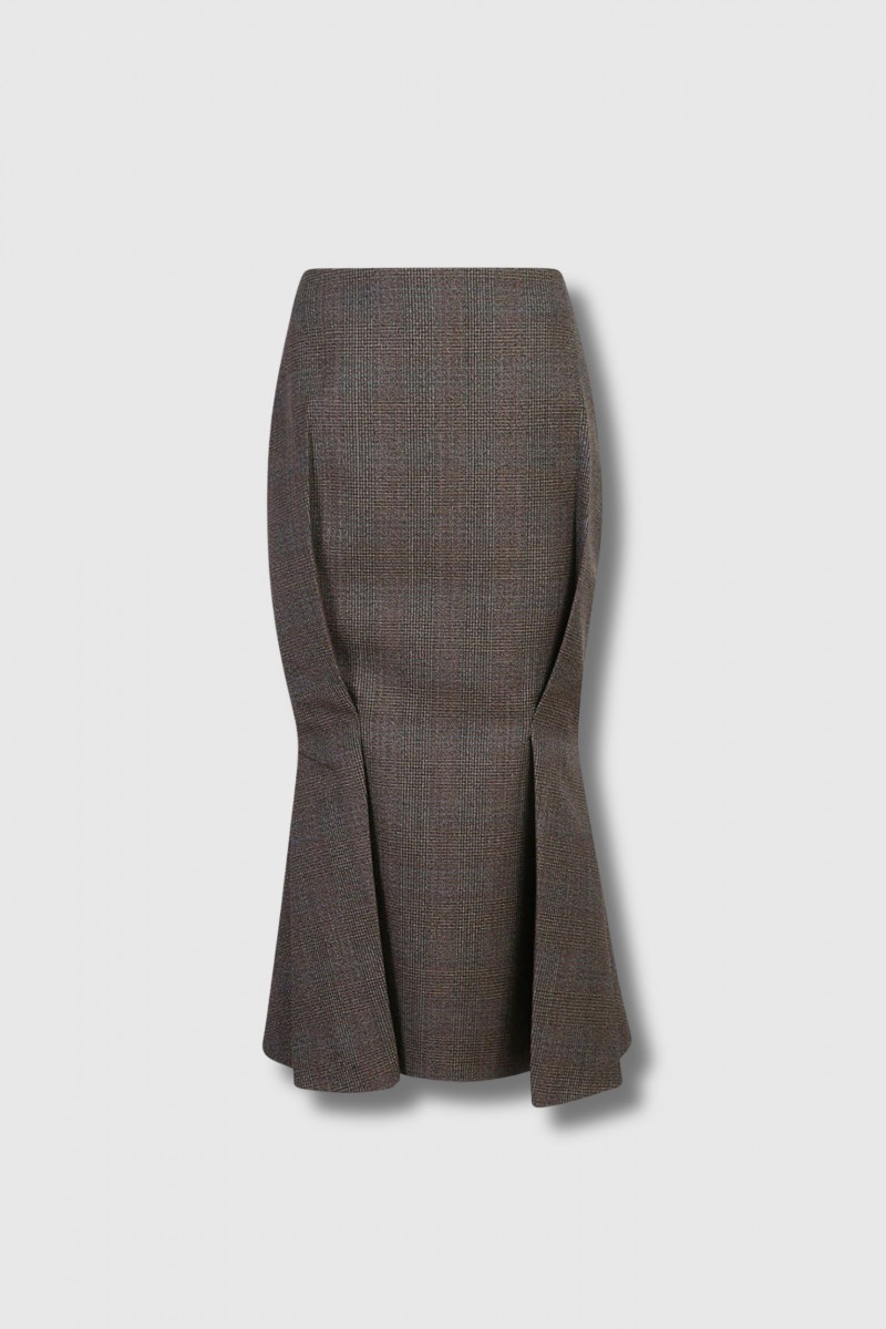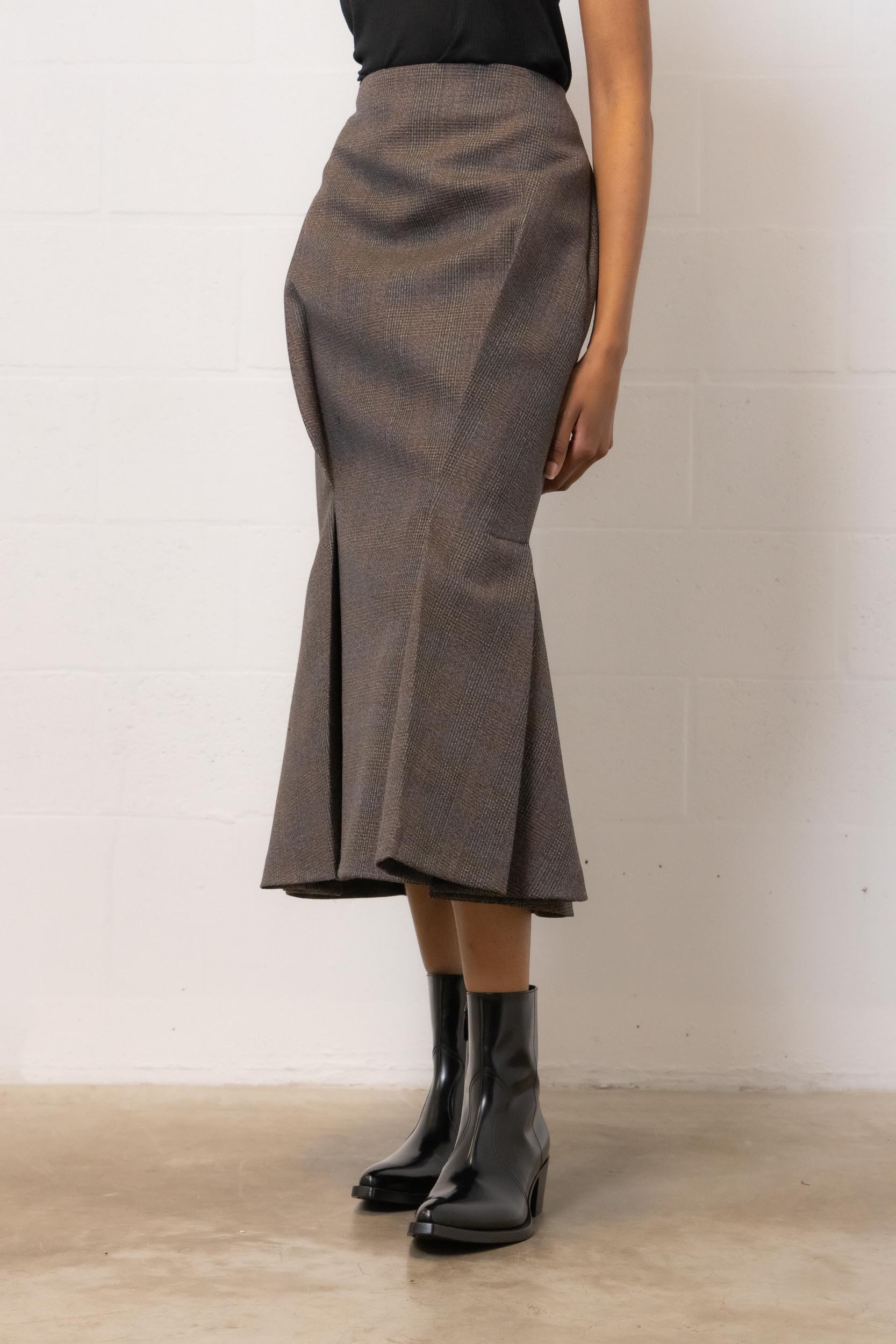 This grey Prince of Wales print mermaid skirt is designed by Prada. It slips on thanks to a concealed zip and has a flared cut.