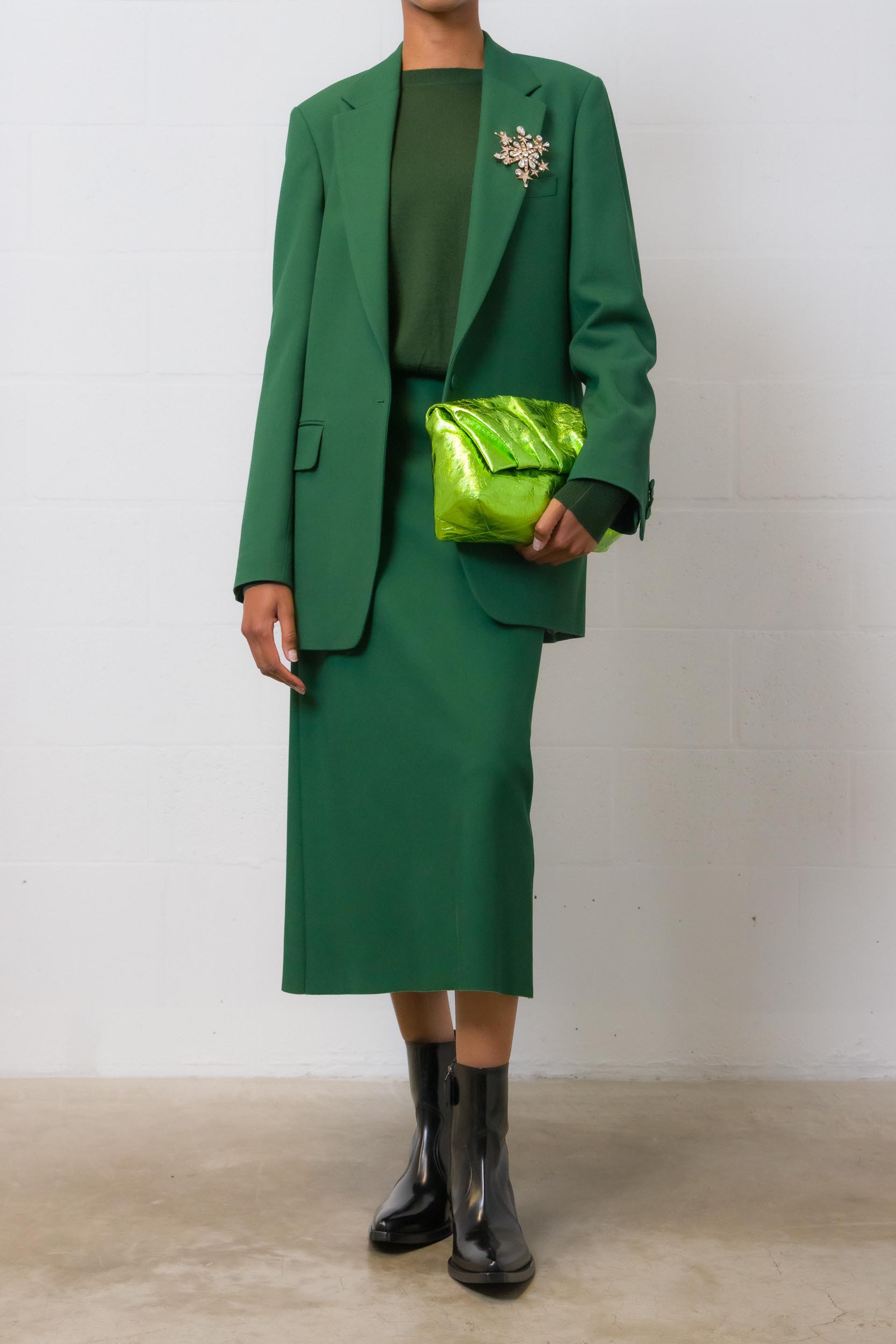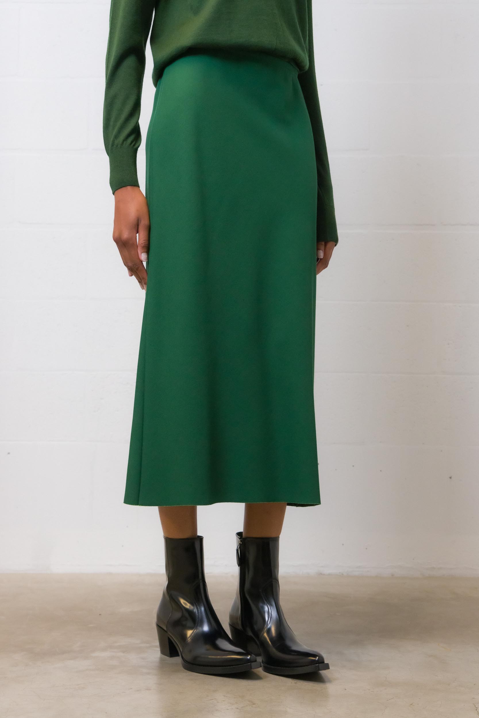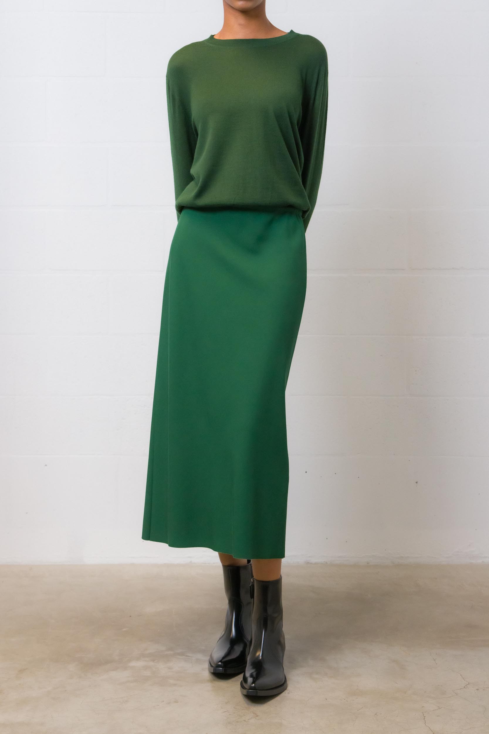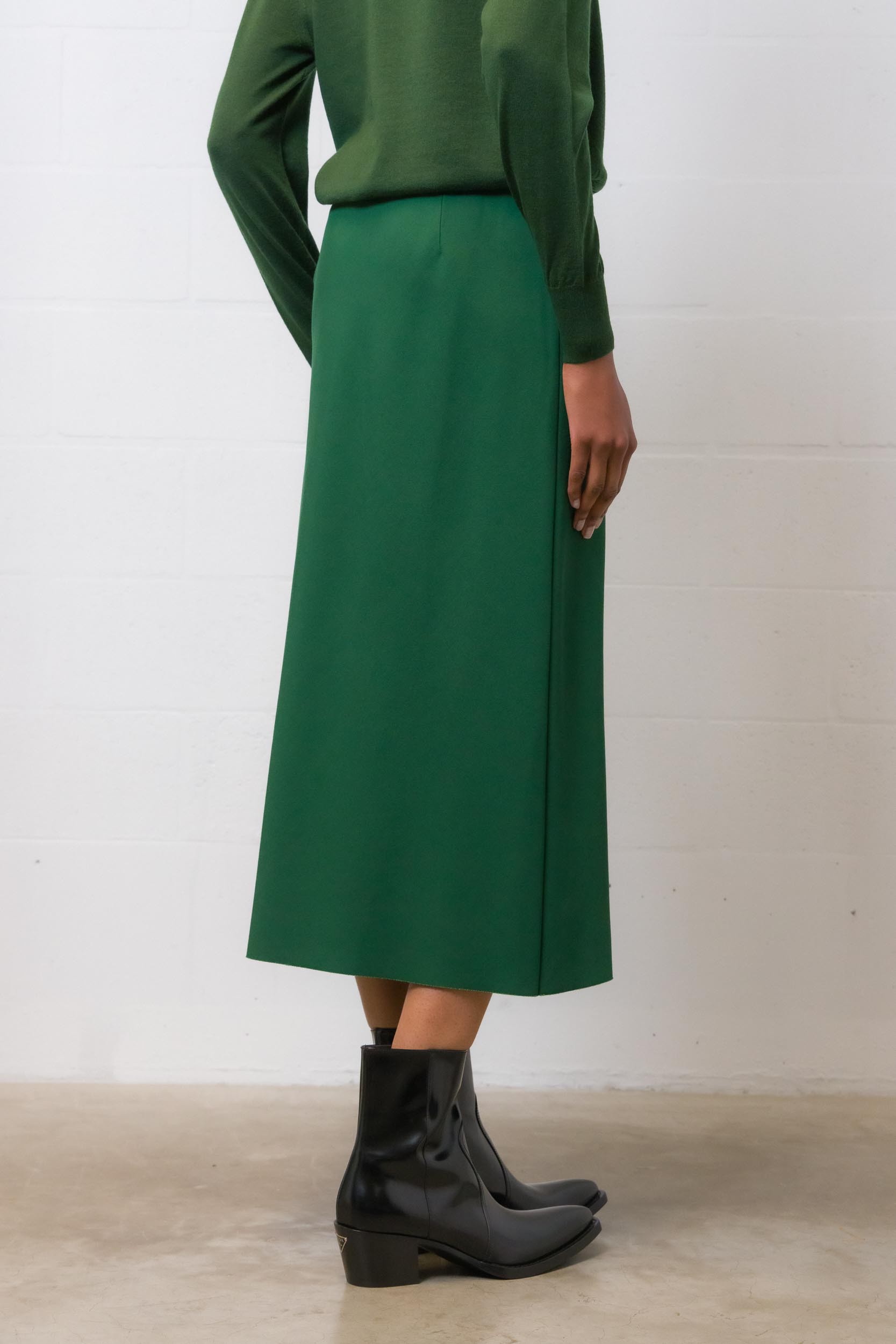This bottle green pencil skirt is designed by Dries Van Noten. It stands out with its elastic waistband and fluid cut, providing optimal comfort.