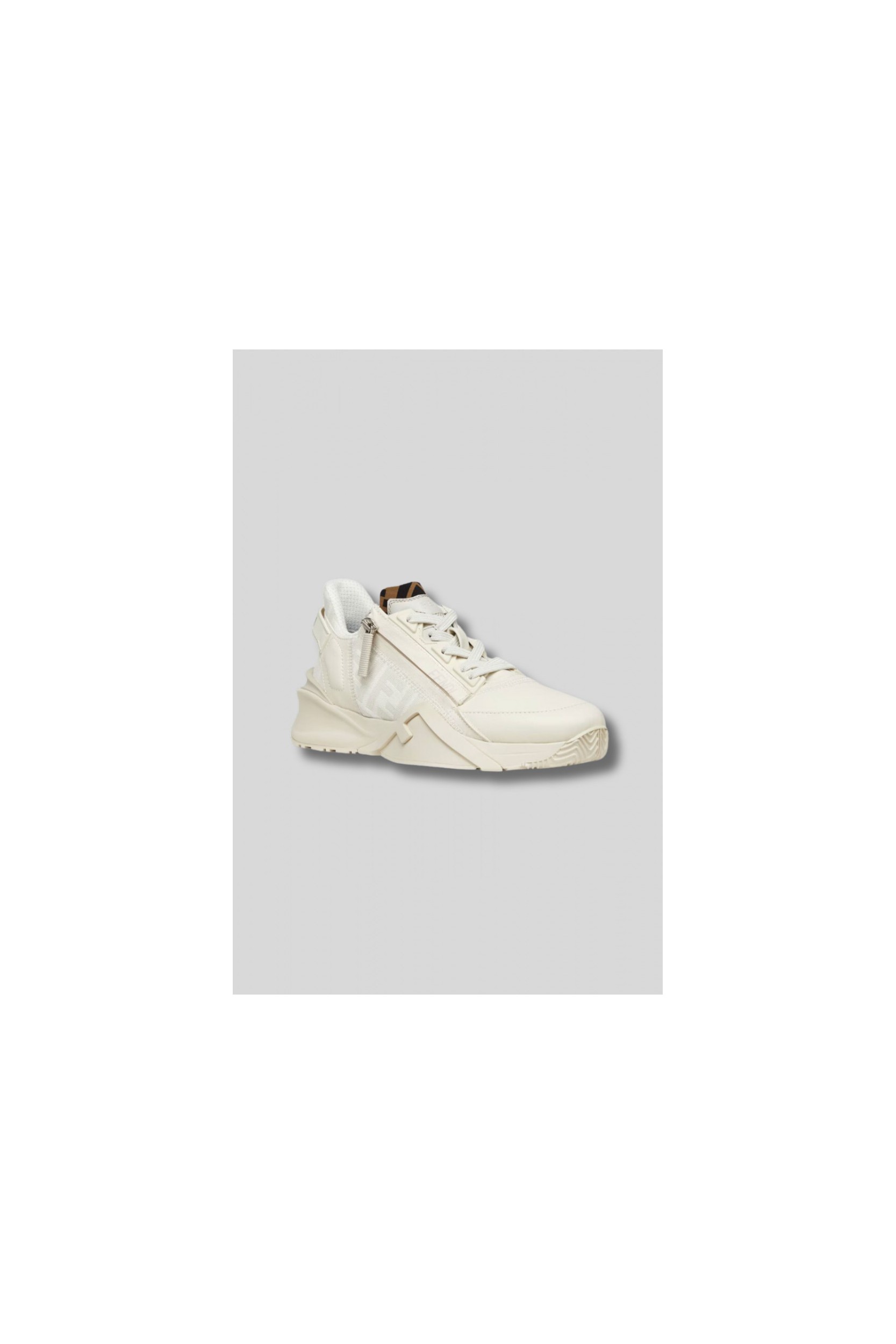 Fendi Flow sneakers with adjustable elastic laces and side zipper. Customized with FF motif on the tongue and embossed rubber logo patch on the back of the heel.