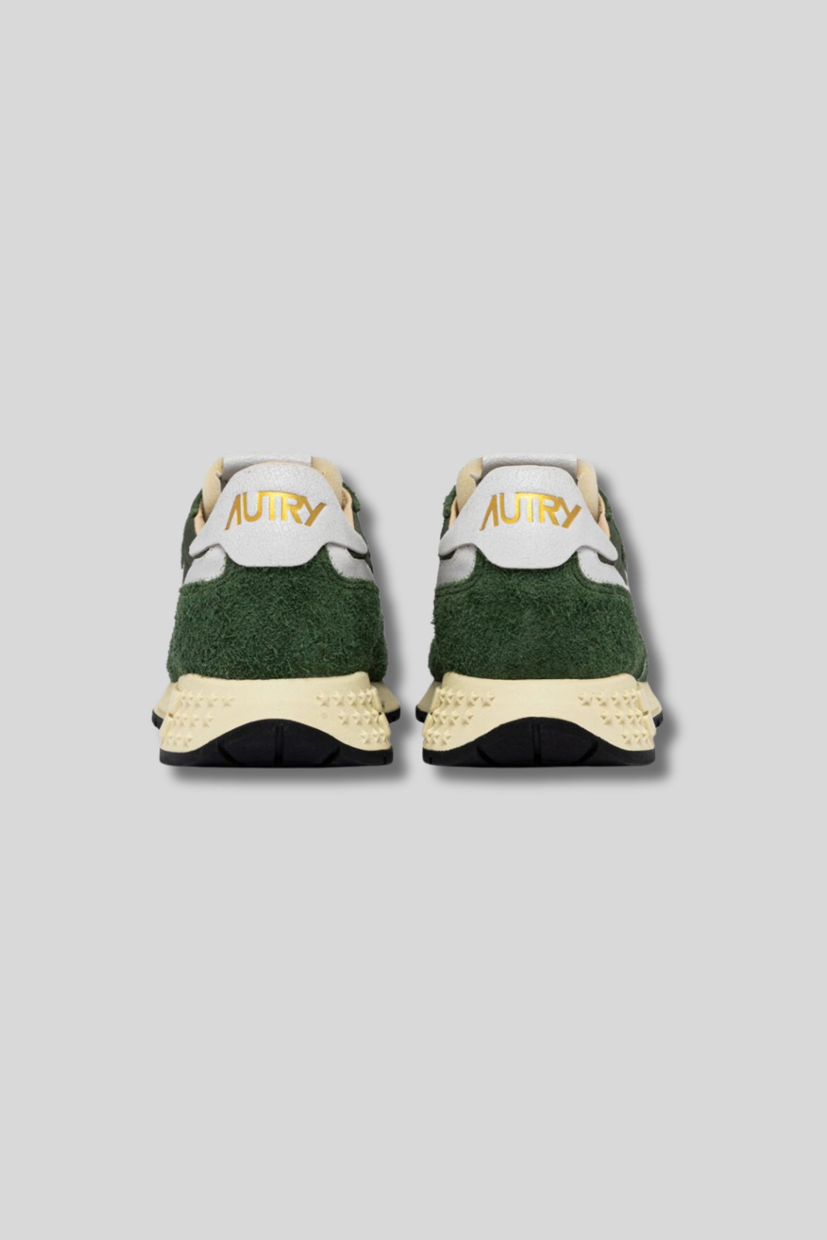 These Reelwind sneakers in military green are designed by Autry. Their design combines beige and silver suede, enhanced by a black leather patch on the sides. Their refined silhouette and technical construction offer optimum freedom of movement. The rubber sole, with its embossed tread, features the A arrow, a modern, graphic interpretation of the brand's logo.