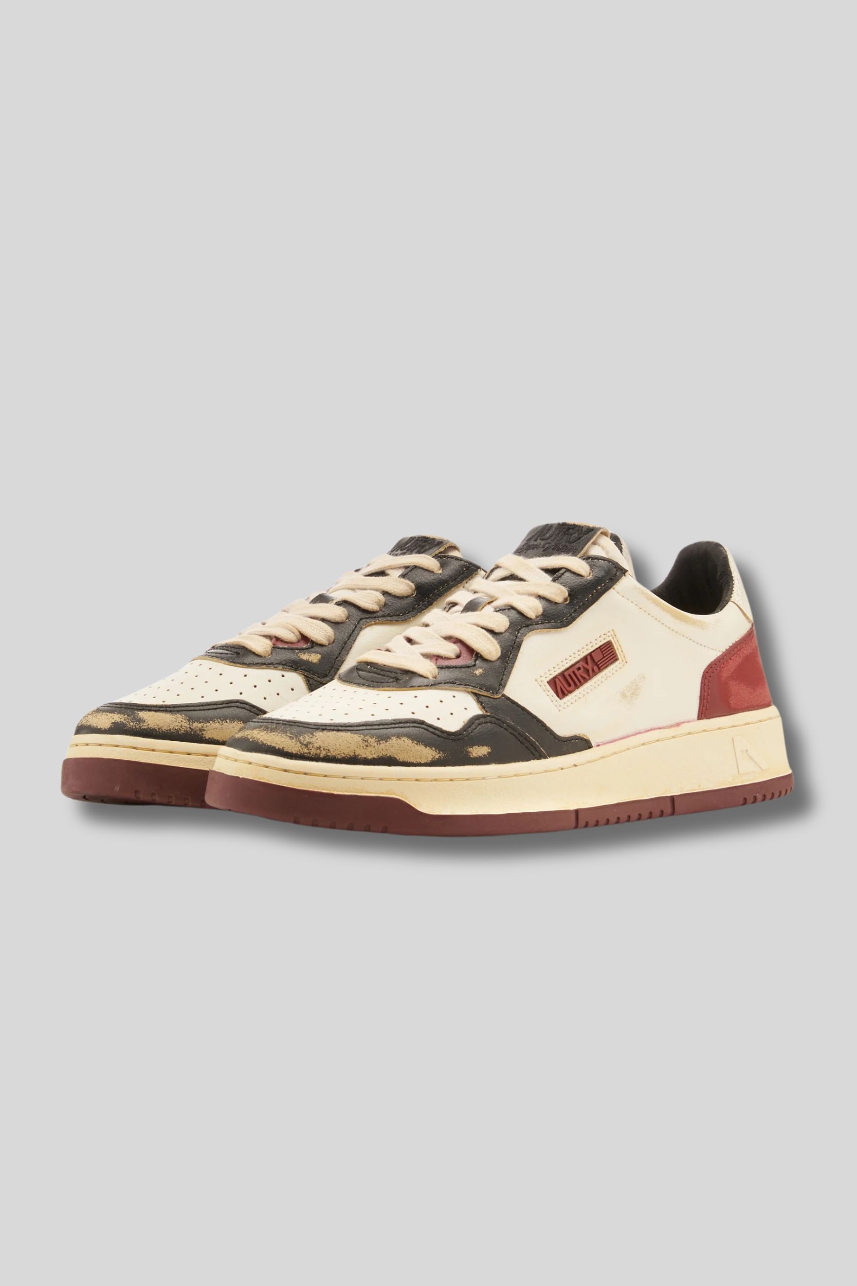 These black and burgundy sneakers are designed by Autry. Their design, inspired by the 80s, is in supple leather with a worn effect. They feature crackling effects that give them an aged, vintage look.