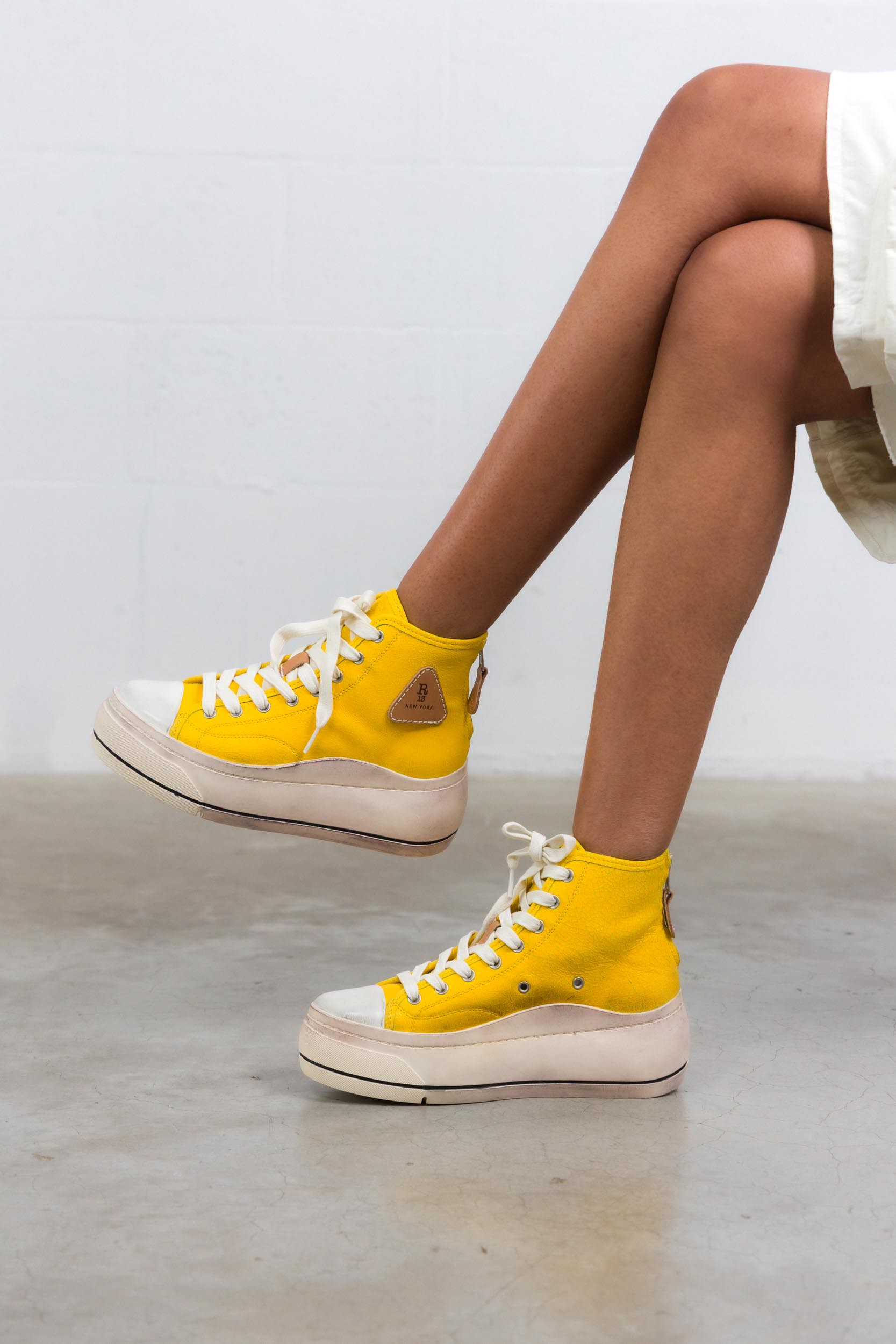 These yellow and blue Kurt High Top trainers are designed by R13. They are made from leather and have a zip fastening at the back for easy slip-on.