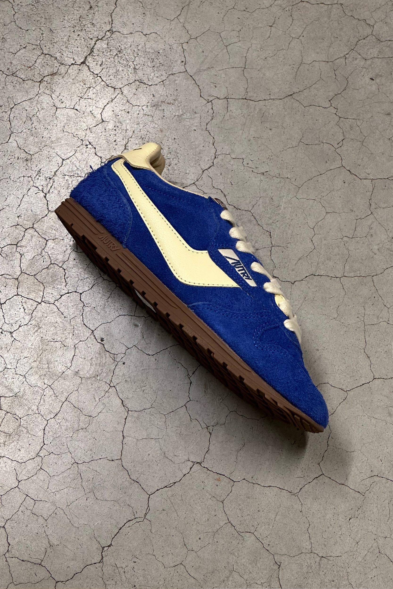 These Wingspan Low Wom trainers for men in blue suede are designed by Autry. They are inspired by the American lifestyle of the 1960s, which was all about freedom and adventure. This shoe has an ultra-flat rubber sole, a lightly padded nylon tongue and a shaved suede and leather upper.