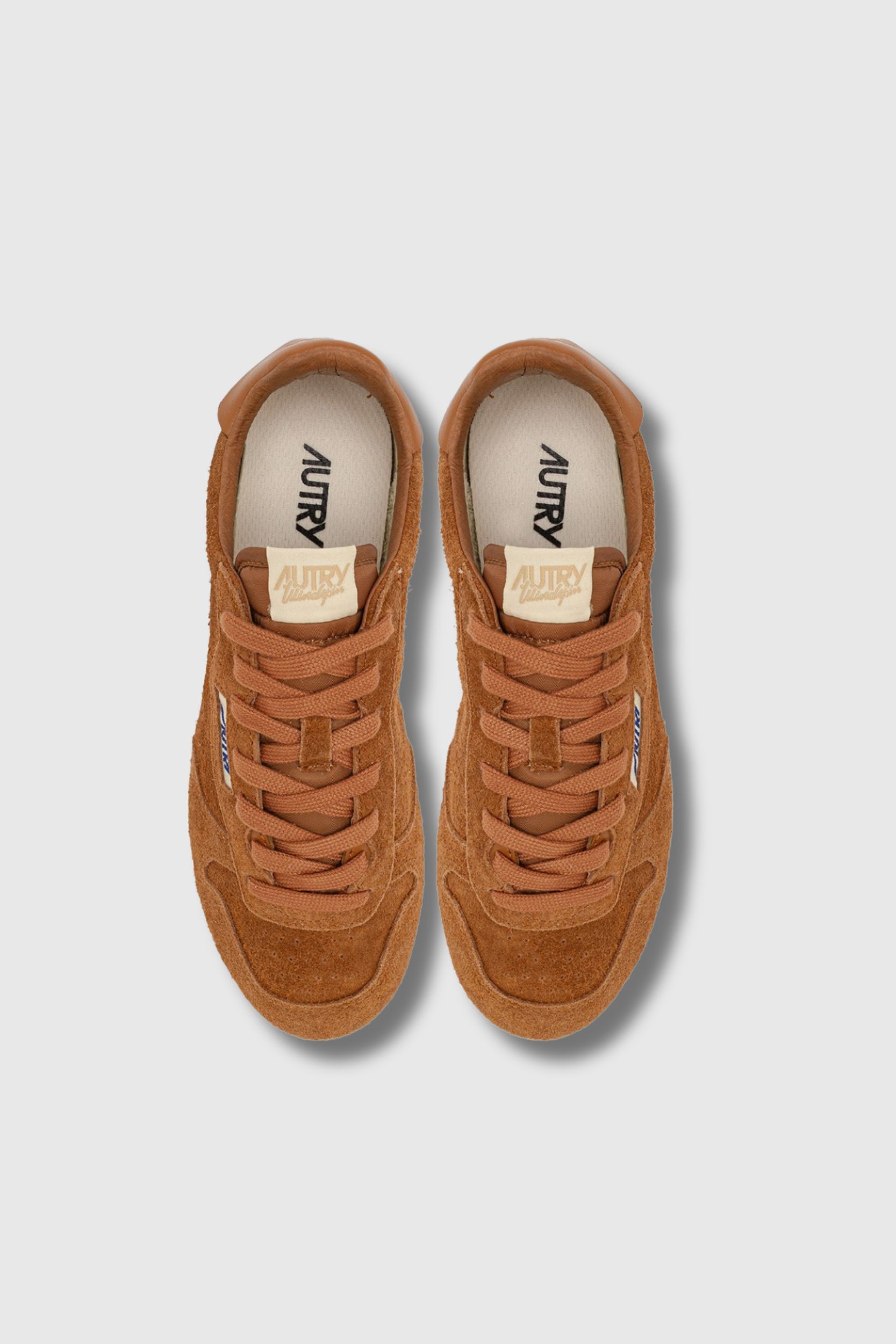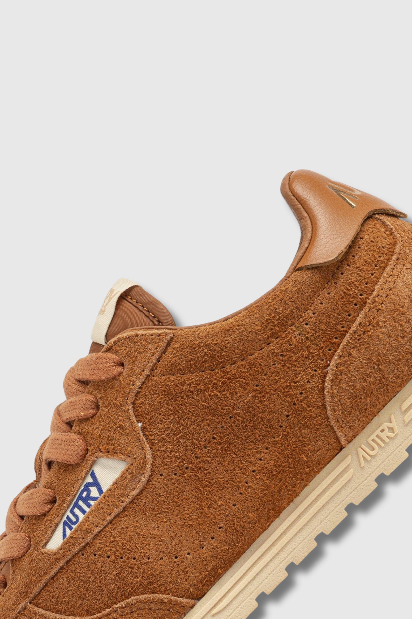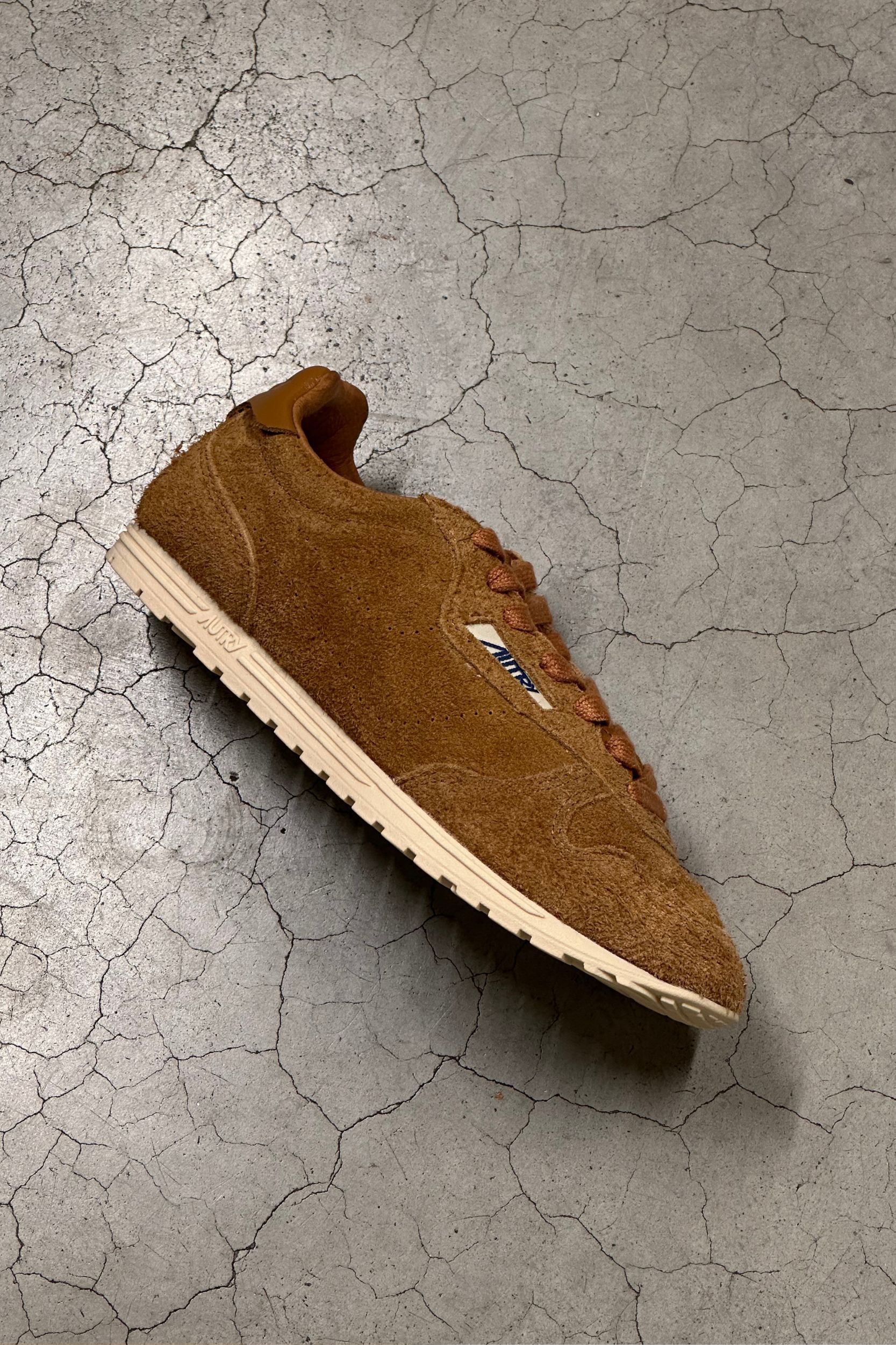 These camel suede Wingspan Low Wom trainers are designed by Autry. They are inspired by the American lifestyle of the 60s, which was all about freedom and adventure. This shoe has an ultra-flat rubber sole, a lightly padded nylon tongue and a shaved suede and leather upper.