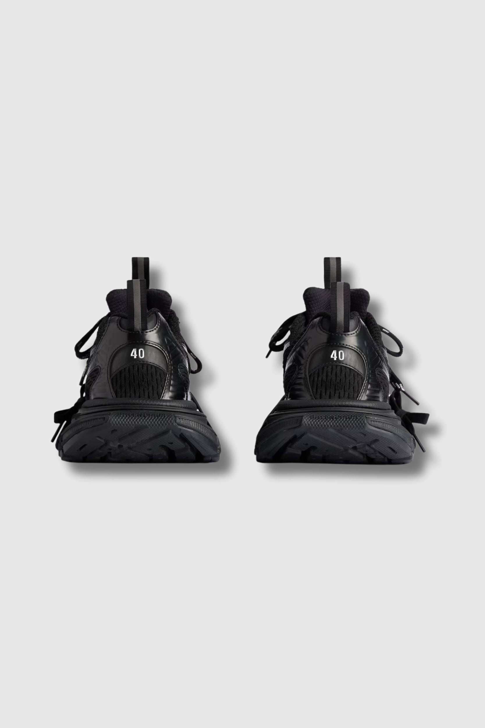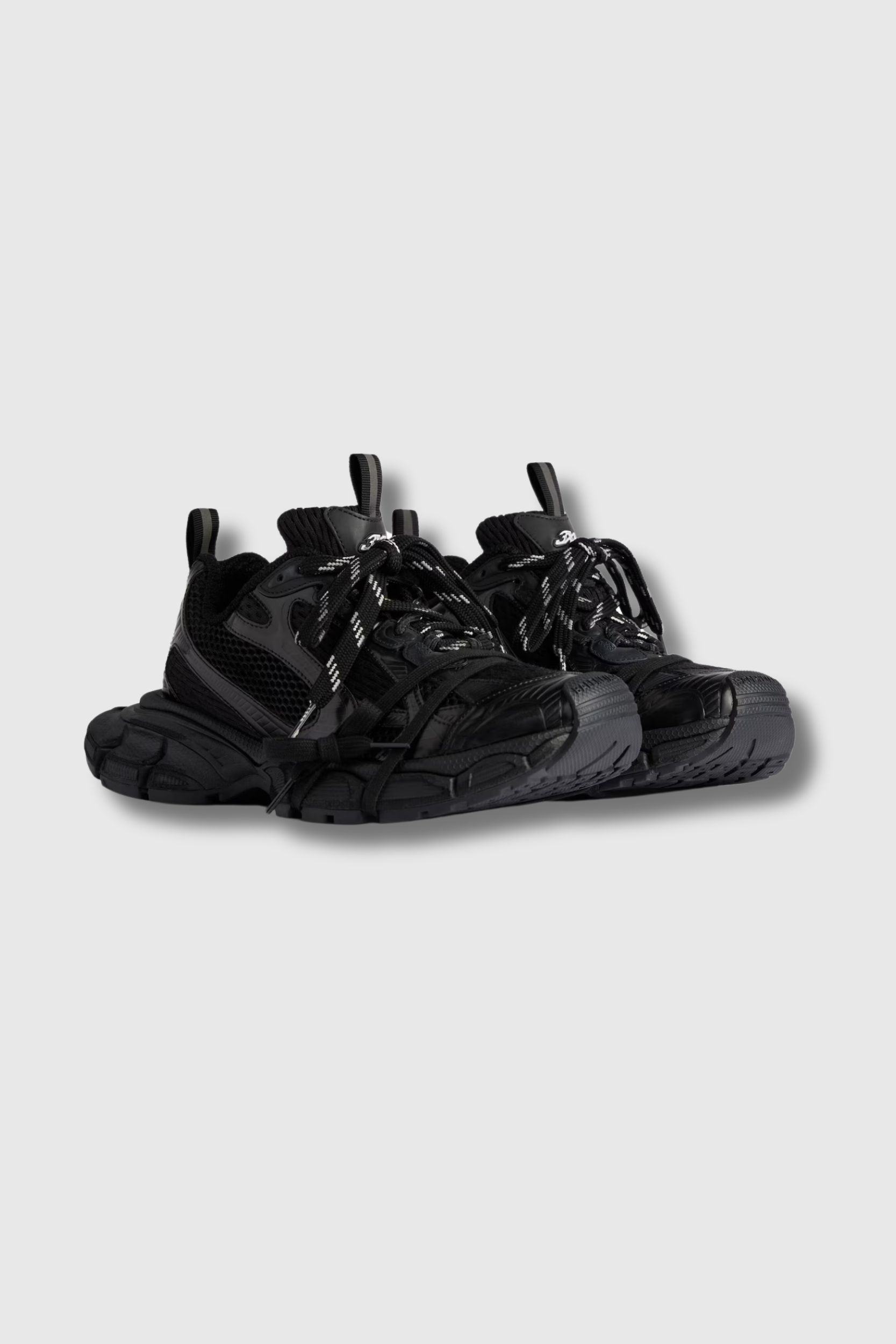 These black mesh and polyurethane 3XL sneakers are designed by Balenciaga. This model features the house's logo on the edge of the vamp and a slip-on tab at the back.