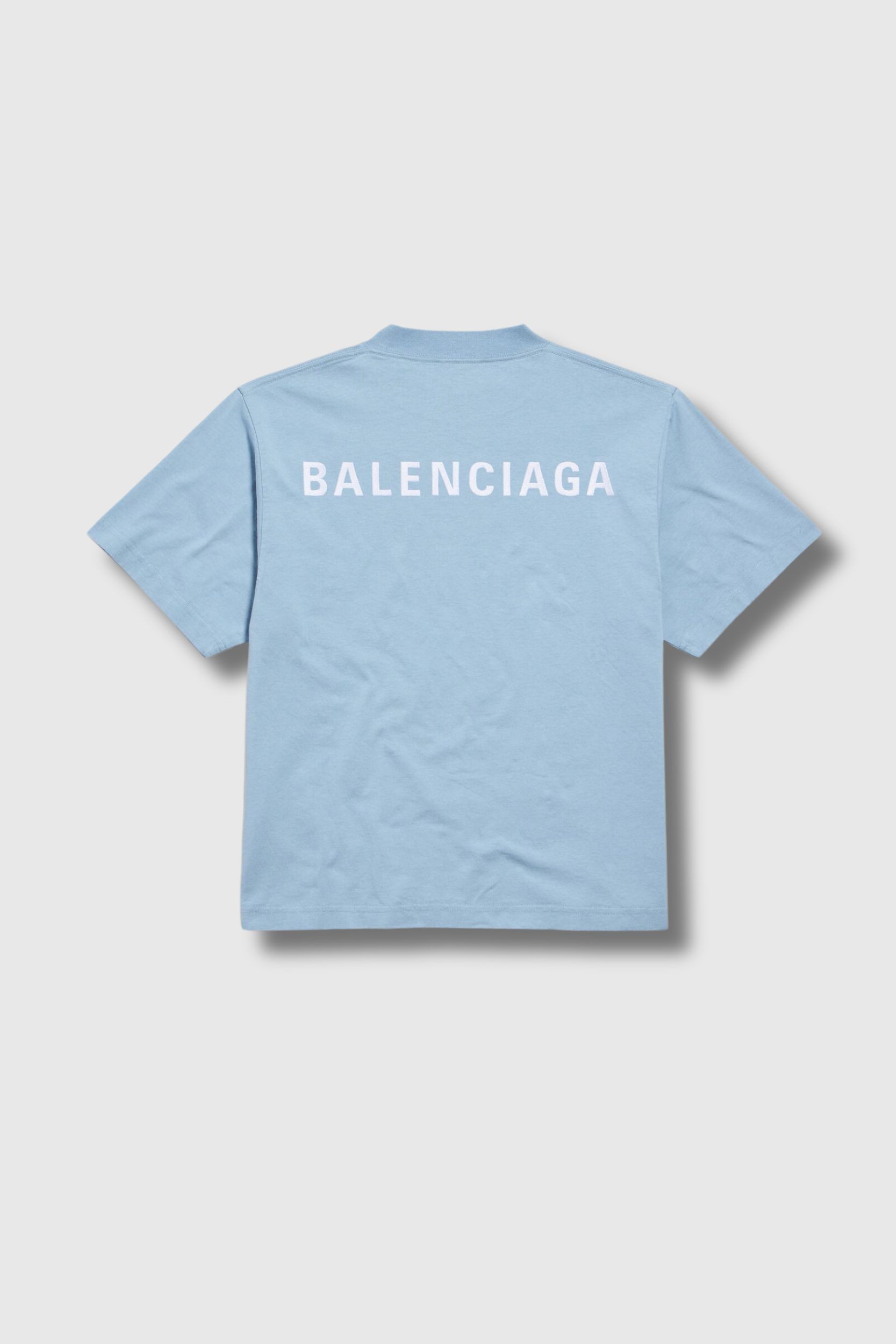 This light blue jersey T-shirt designed by Balenciaga is crafted from dry-touch jersey. It features a classic round neck, short sleeves and Balenciaga Back artwork embroidered on the front and back.