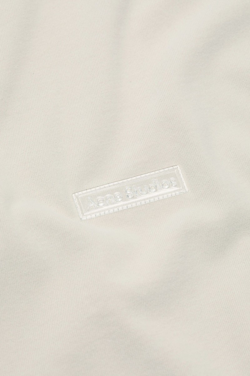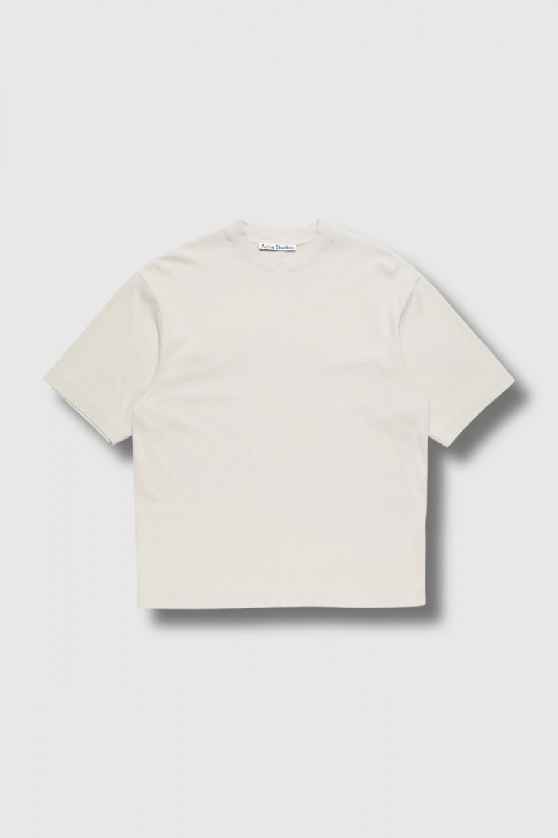 This beige logo T-shirt by Acne Studios is crafted from fine cotton jersey with a soft feel, treated for a faded and slightly worn effect. Featuring short sleeves and a crew neck, it has a relaxed unisex fit. A rubber Acne Studios logo patch on the centre back adds a subtle, contemporary signature, while the piece-dyed finish enhances its casual, authentic look.