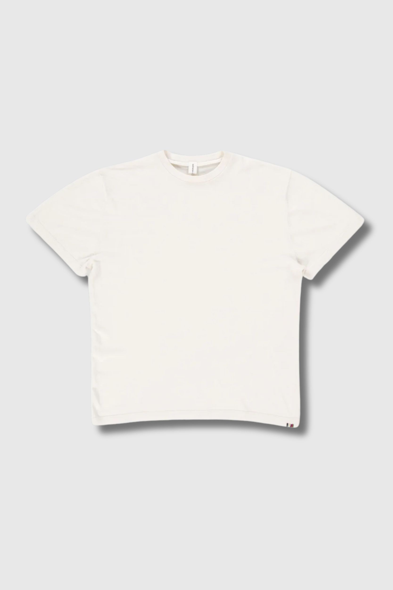 This Rik Snow T-shirt in white cotton and cashmere by Extreme Cashmere is a comfortable short-sleeved T-shirt offering the most relaxed fit in the cotton-cashmere T-shirt series. Crafted from a luxurious blend of 30% cashmere and 70% cotton, it combines the softness of classic cashmere with the crisp structure and breathability of cotton for an elegant and sophisticated staple.