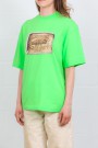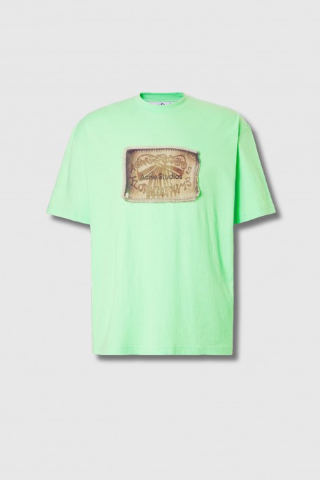 This neon green graphic T-shirt is by Acne Studios. True to size, it features a loose fit with a length falling below the hips. Made from a non-stretch fabric, it stands out with its bold graphic design, ideal for a modern look.