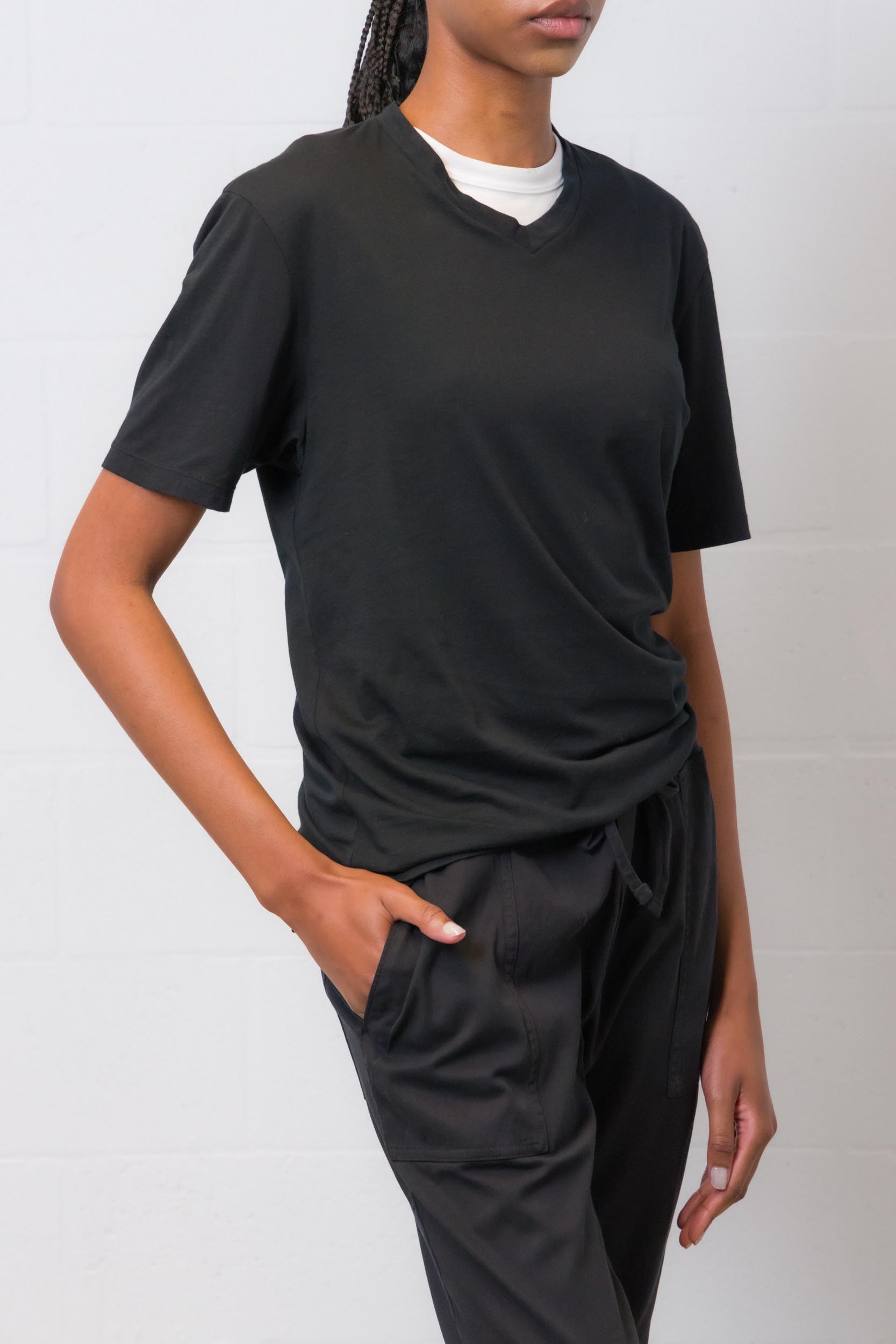 This Luxe Lotus jersey V-neck t-shirt designed by James Perse is crafted from premium Japanese jersey. The luxurious quality of this fabric lies in the cotton spinning process, which gives it a smooth, refined texture, reminiscent of an ultra-soft matte satin. Style details include an inset V-neck, short sleeves, and neatly finished hems.