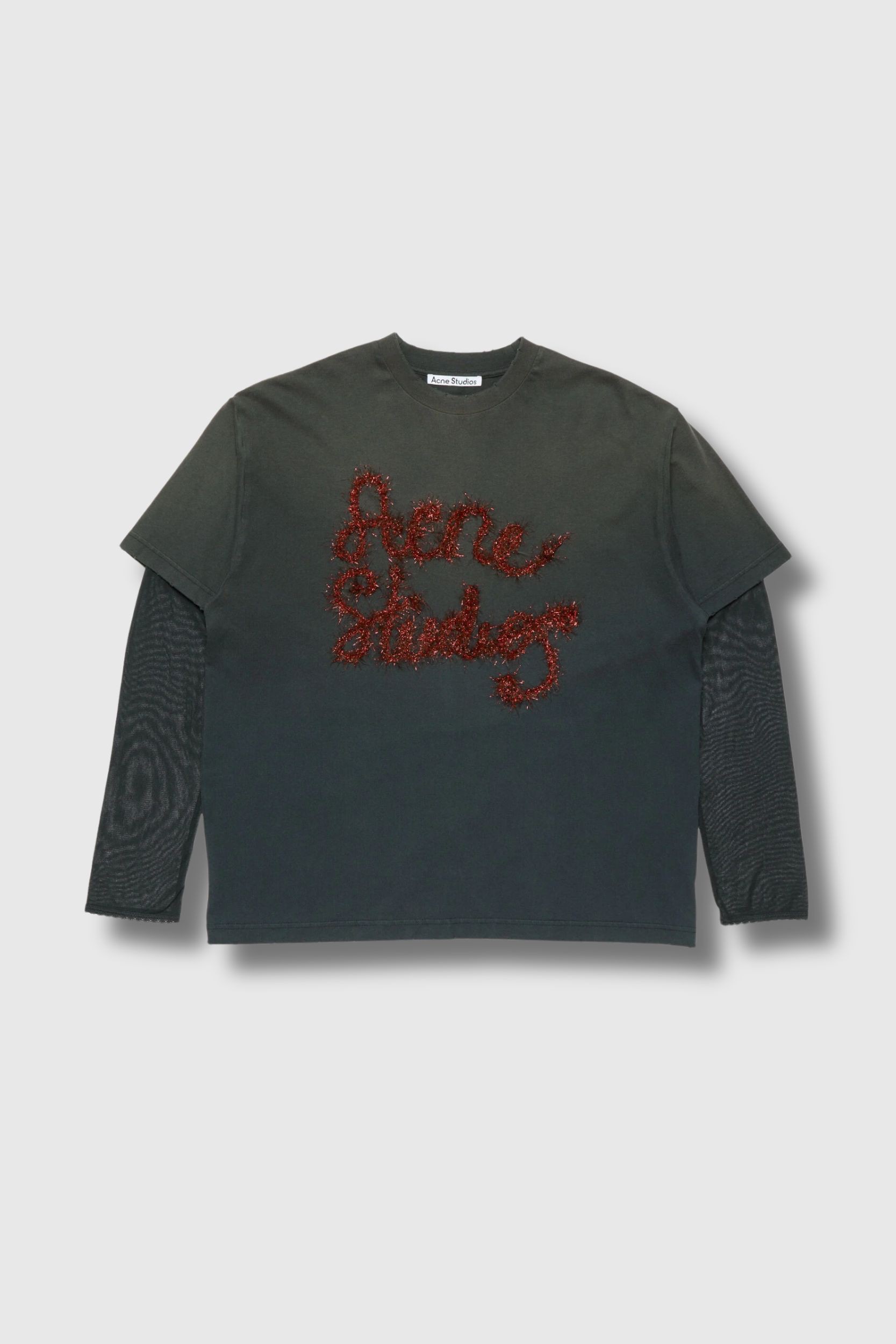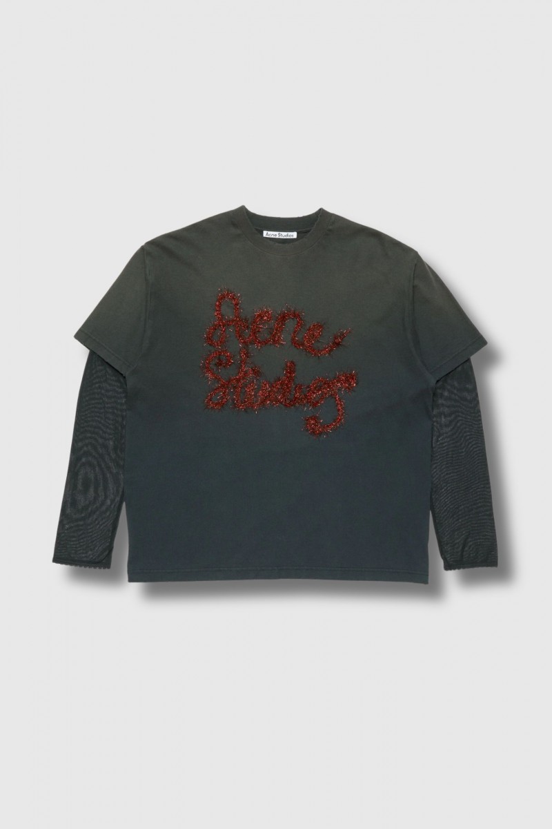 This Edra top with tulle sleeves is designed by Acne Studios. Made from soft cotton jersey with a slightly irregular texture, it evokes a contemporary vintage spirit. Its sheer mesh sleeves contrast with the main fabric for a subtle and refined effect. The embroidered Christmas garland-style logo adds a playful and graphic touch. An original piece with a regular fit, perfect for revisiting the classic T-shirt with a bold twist.