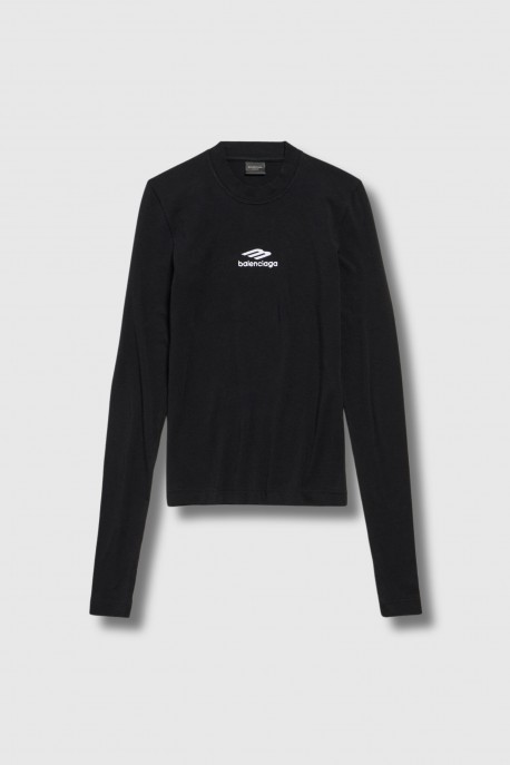 This long-sleeved 3B Sports Icon top is designed by Balenciaga. Crafted from black and white thermal stretch jersey, it combines performance with contemporary aesthetics. Its fitted cut hugs the silhouette with precision, while its round neck and long sleeves ensure comfort and support.