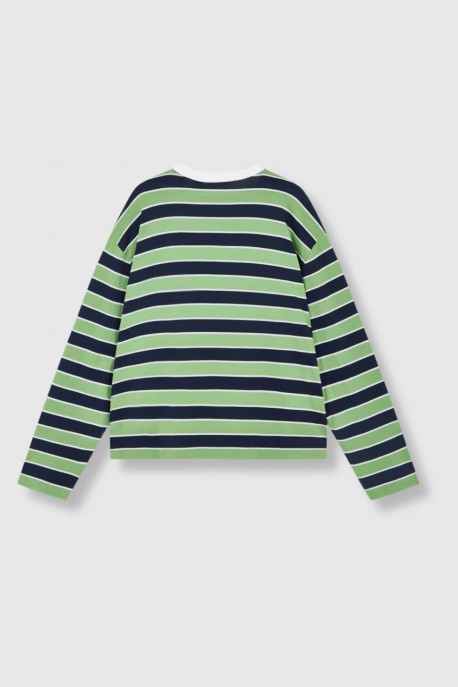 Long-sleeved striped green jersey top