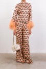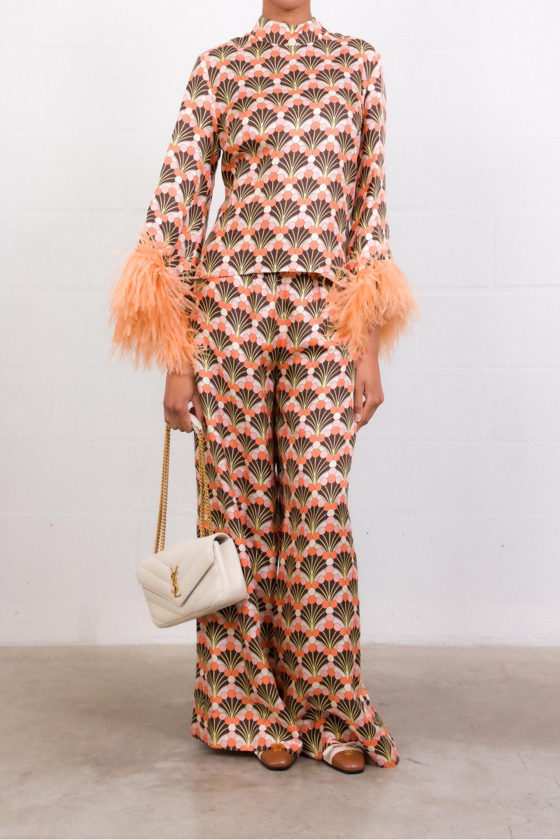 Orange silk feather print top