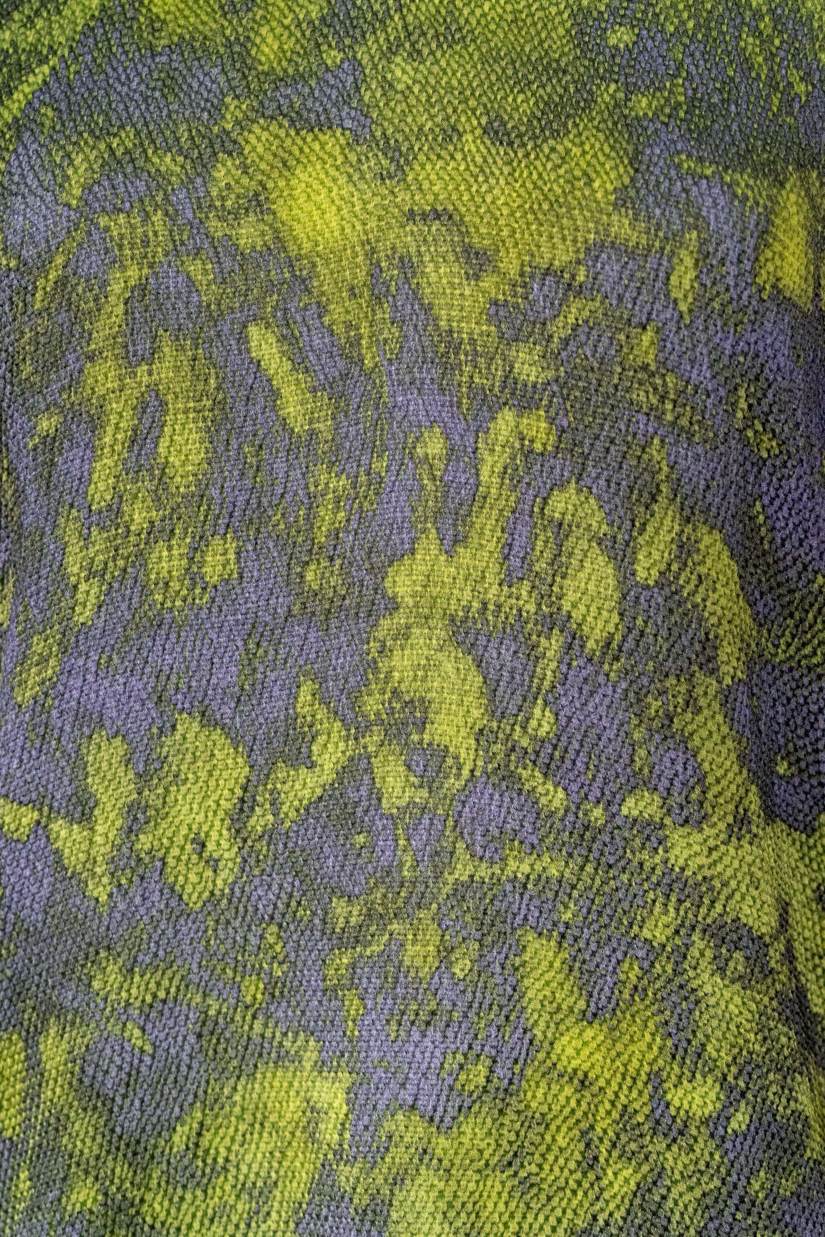 This green printed V-neck silk top is designed by Avant Toi. It features a V-neck, long sleeves and a loose fit.