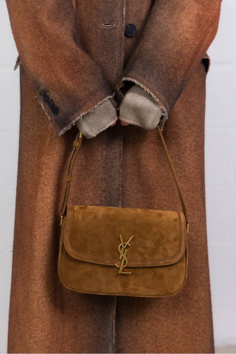 The "Solferino" Medium bag model in natural suede by Saint Laurent strikes a perfect balance between sophistication and authenticity. Crafted from premium calf suede, this piece is distinguished by the iconic Cassandre clasp — a signature of the House’s craftsmanship.