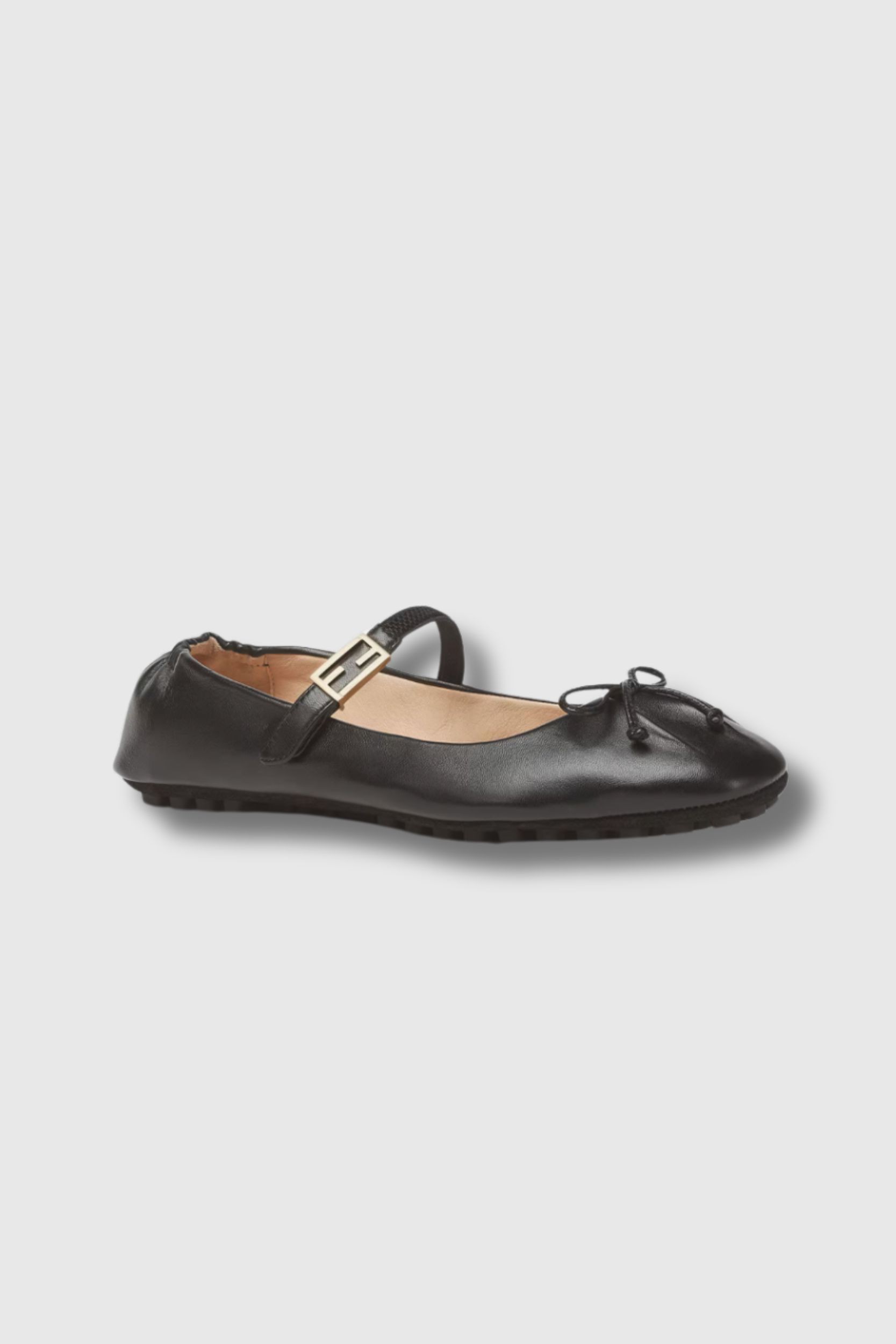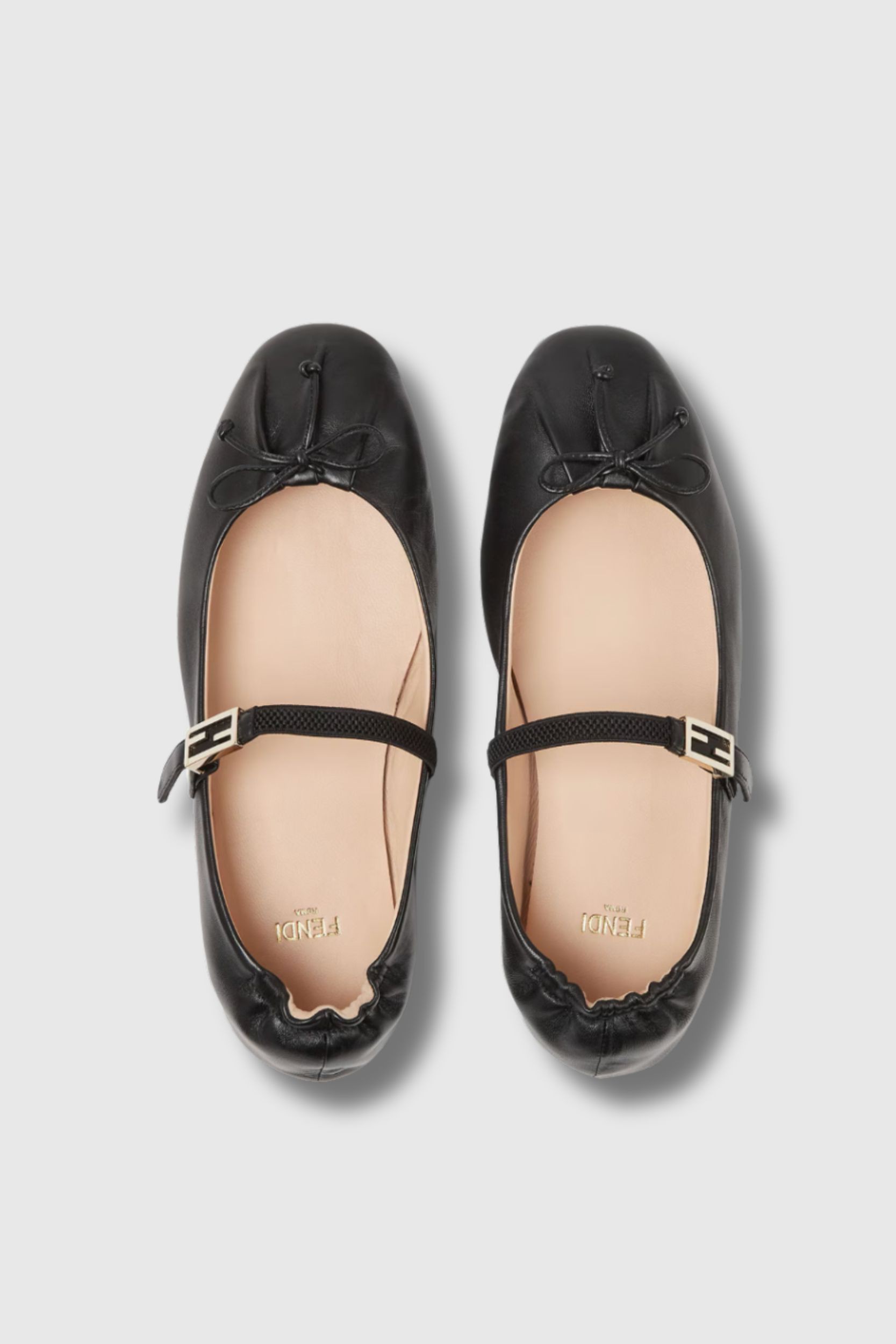 Ces ballerines Baguette en cuir d'agneau noir sont signées Fendi. Celles-ci présentent un noeud sur le devant et une bride élastique détaillé du motif FF.