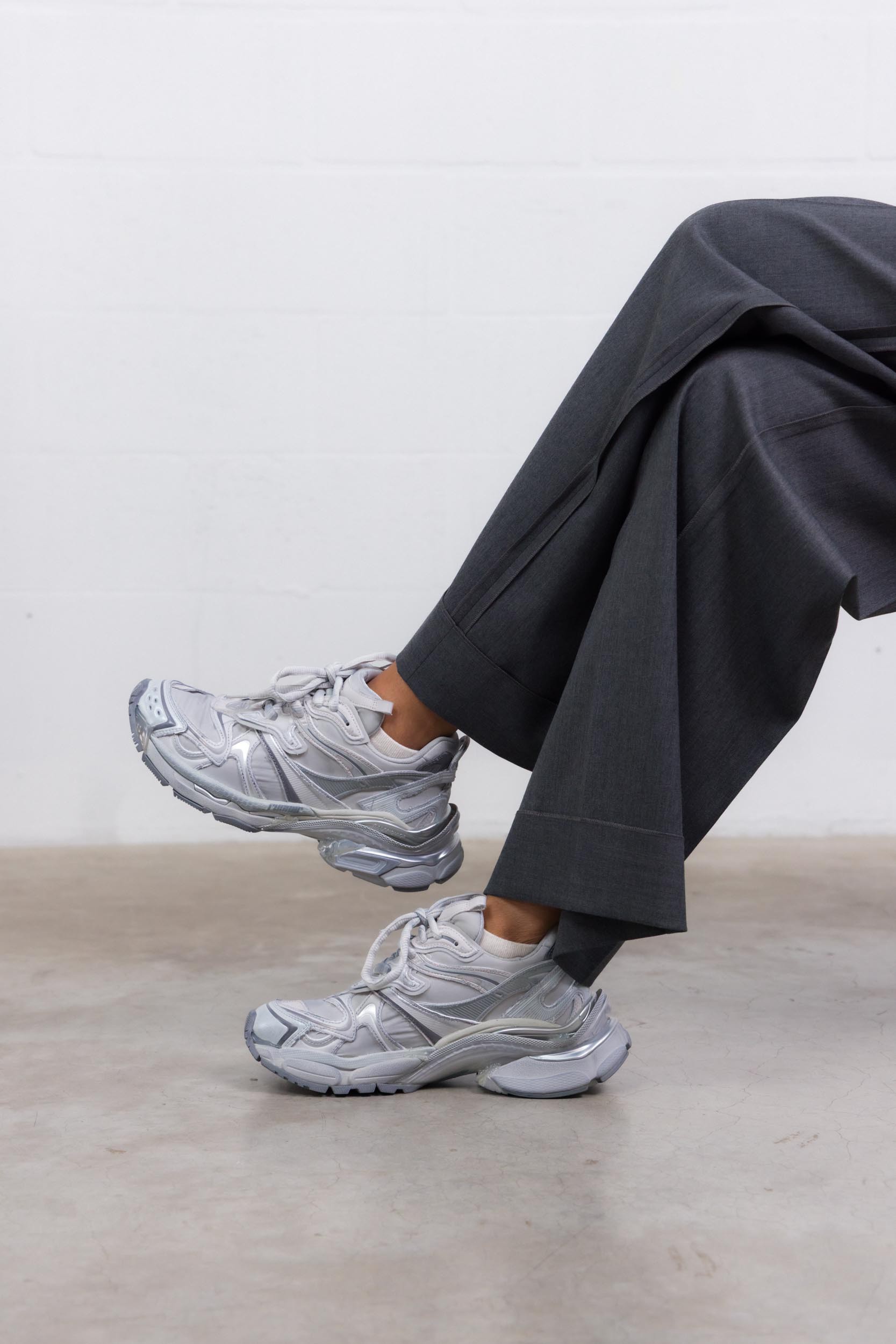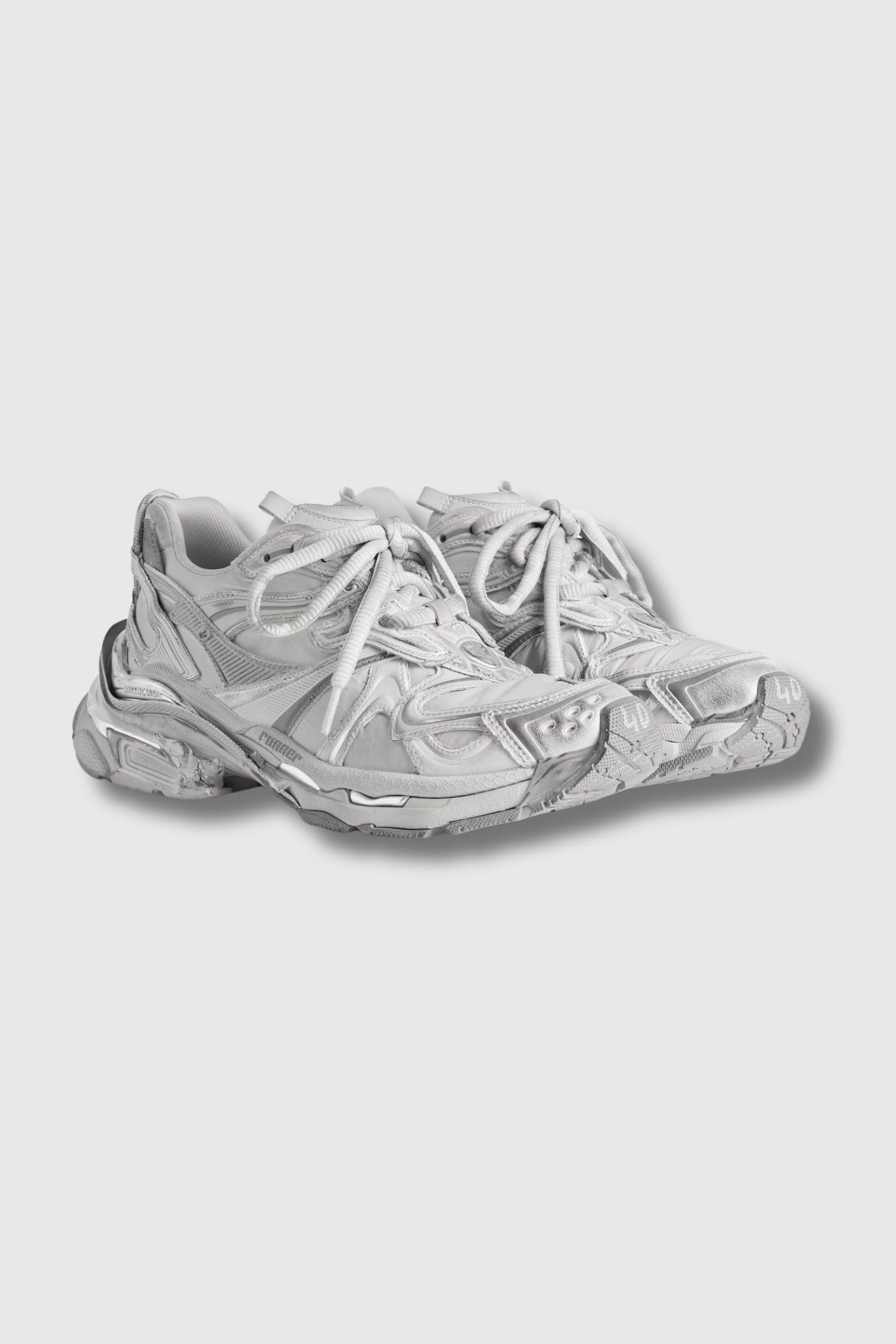 Ces baskets Runner 2.0 nylon Grey et silver sont signées Balenciaga. Celles-ci sont confectionnées en polyuréthane et polyester avec un effet usé distinctif. Elles présentent des détails signature : pointure imprimée sur l’empeigne et débossée à l’arrière, logos Runner et Balenciaga apposés sur la languette, le talon et le côté extérieur. Dotée d’une languette arrière pour un enfilage facile.