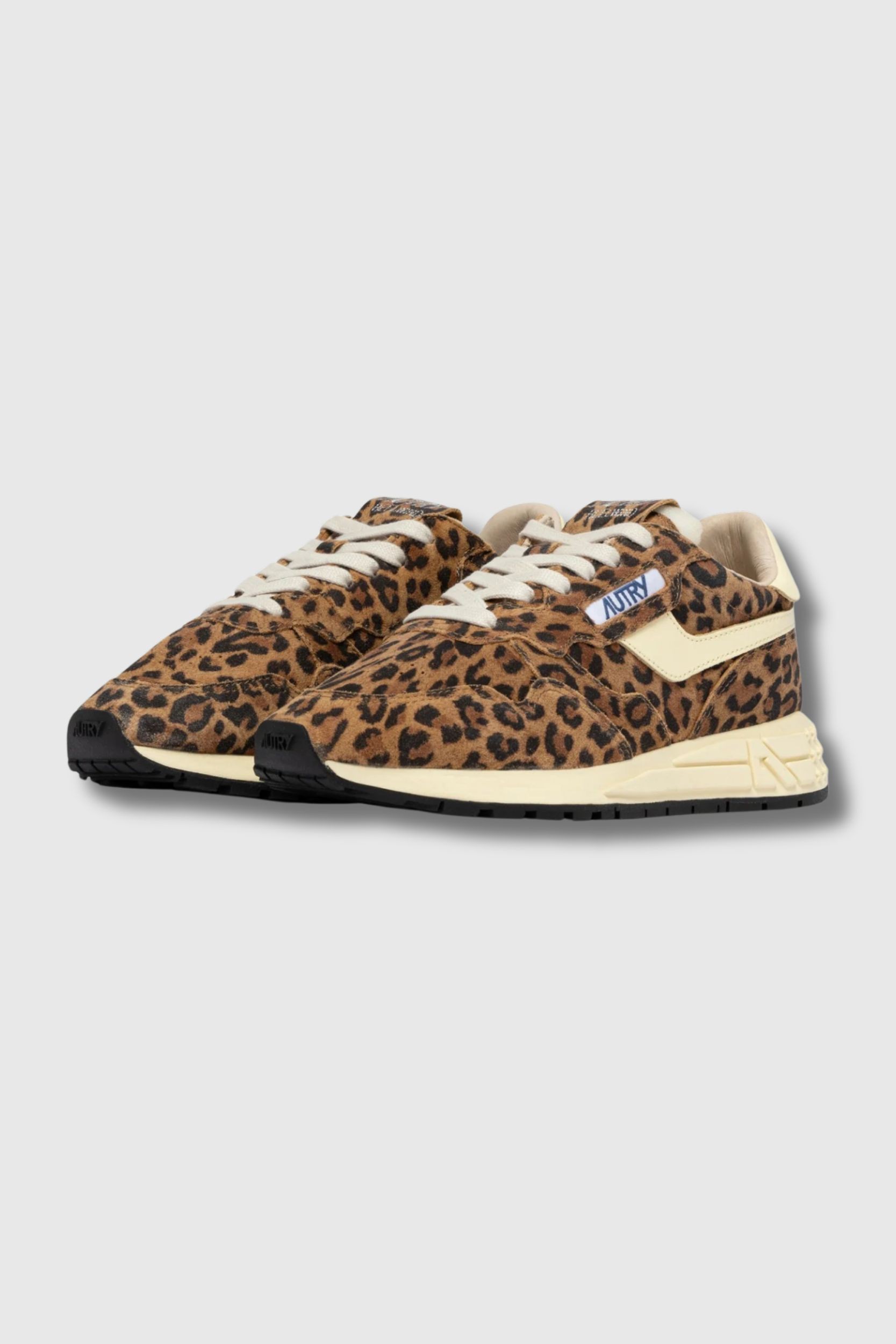 Ces baskets Reelwind léopard signées Autry réinterprètent l’esthétique running des années 80 dans une version féminine et sophistiquée. Confectionnées en daim imprimé léopard, elles sont sublimées par des empiècements latéraux en cuir ivoire qui apportent contraste et élégance. La silhouette élancée allie légèreté, flexibilité et adhérence optimale, pensée pour un quotidien dynamique. Dotées de lacets plats en coton, d’un col rembourré et d’une doublure mêlant cuir, nylon et coton-éponge, elles offrent un confort remarquable. La semelle intérieure en cuir surélevée de 2 cm et la semelle running en caoutchouc, ornée d’un motif étoilé et de la flèche A emblématique, signent un design à la fois rétro et contemporain.