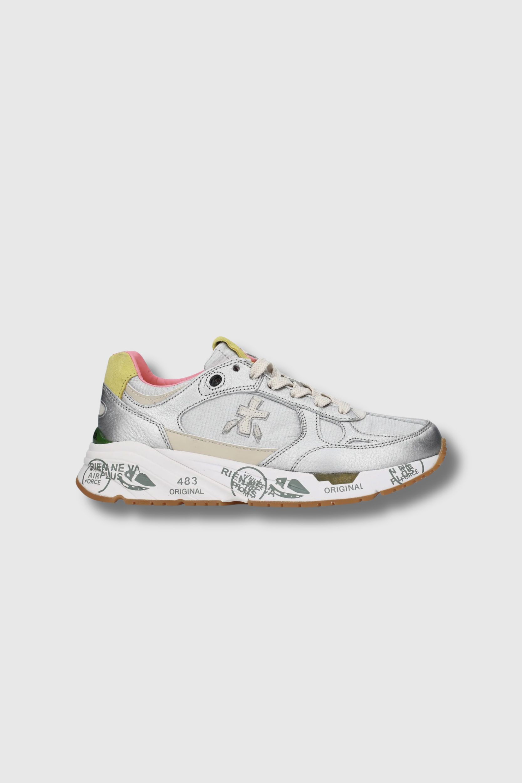 Ces baskets Mased 8115 argentées sont signées Premiata. Inspirées des années 90, elles associent une silhouette moderne à des matériaux premium et des détails contrastés. Fidèles à l’esthétique de la Maison, elles présentent le logo sur les côtés ainsi que l’inscription “MASE” sur la languette, pour un style dynamique et reconnaissable.