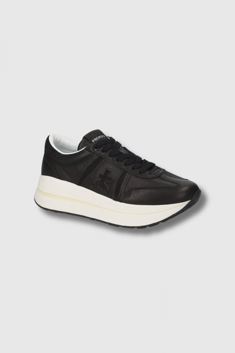 Ces baskets Beth Coin noires sont signées Premiata. Confectionnées à partir de cuirs et matériaux de haute qualité, elles se distinguent par un mélange de textures et des détails brillants. Leur semelle travaillée apporte une touche casual chic tout en affinant la silhouette, pour un style à la fois élégant et décontracté.