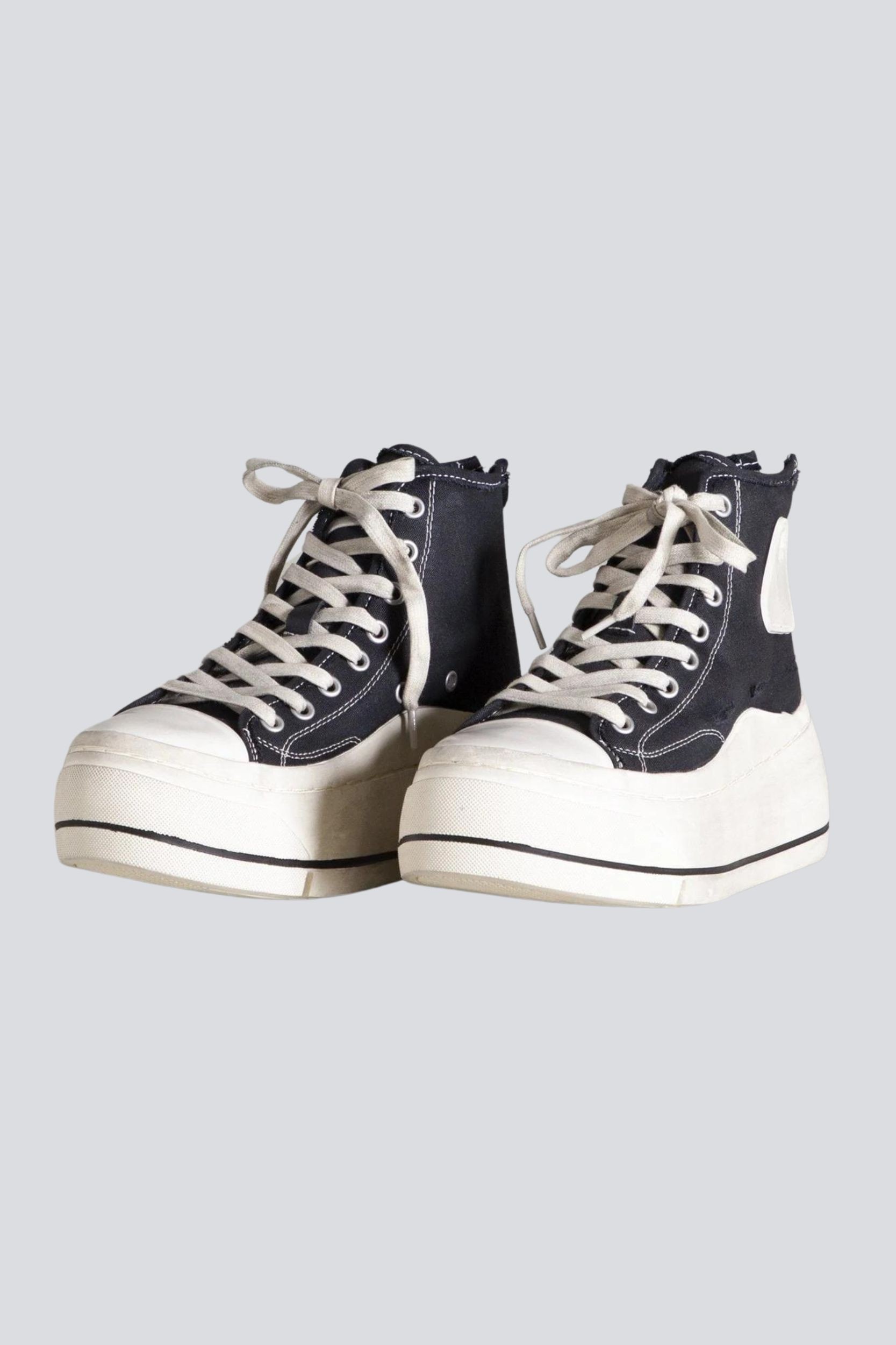 Baskets montantes classiques en toile avec fermeture à lacets, plate-forme et embout cousus à la main.